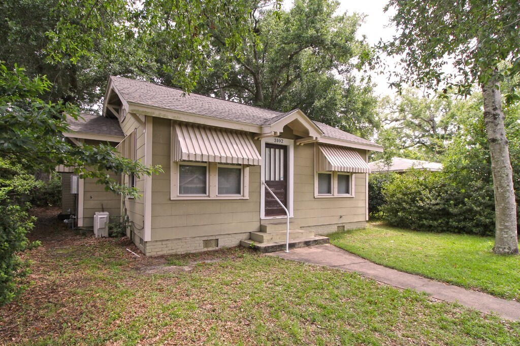 Located in East Pensacola Heights, this 2-bedroom, 1-bath bungalow offers convenient access to downtown Pensacola, I-10, local beaches, nightlife, Apple Market, and the public boat launch. The home features heart-of-pine wood floors, white shiplap walls and ceilings, and an eat-in kitchen with stainless steel appliances, including a refrigerator, electric range, built-in microwave, and dishwasher, plus built-in bench seating. The primary bedroom includes two closets and a ceiling fan, and the second bedroom also has a ceiling fan with easy access to the updated bathroom, which offers tile flooring, built-in storage, a modern vanity, and a clawfoot tub with shower. Additional features include washer and dryer hookups in the exterior storage shed off the back door, a fully fenced yard, a tankless gas water heater, and a central mini-split system. Pets are considered with owner approval and a $250 non-refundable pet fee per pet; aggressive breeds will not be considered. Residents are required to have renter liability insurance, which can be added for $11.95/month, or opt into the Resident Benefits Package (RBP) for $45/month, which includes renter liability insurance, HVAC air filter delivery, and on-demand pest control. More details in the application.