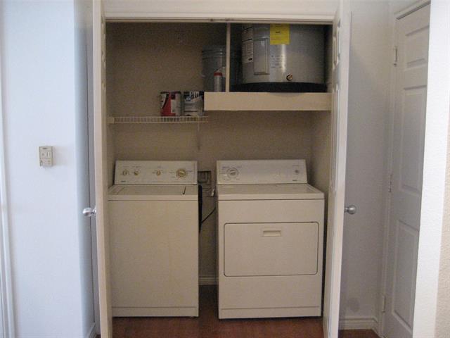 Warm a bedroom, one bath condo features with carpet, vinyl, and laminate floors, new paint entire unit, and double French doors with blinds that lead to a view of the beautiful courtyard. High Speed Internet. The Utility room comes with a full sized washer and dryer (Landlord will not maintenance the washer & dryer). The refrigerator is ready at kitchen. Owner pays monthly for the $289 HOA fee which includes: on site concierge, gym, lap pool, club house, dog walk, water utility, extensive courtyard and outdoor grilling area. ONE assigned parking spot in the attached gated garage - parking # 33. Ready for move in.