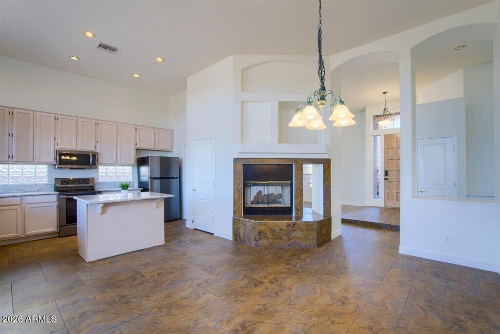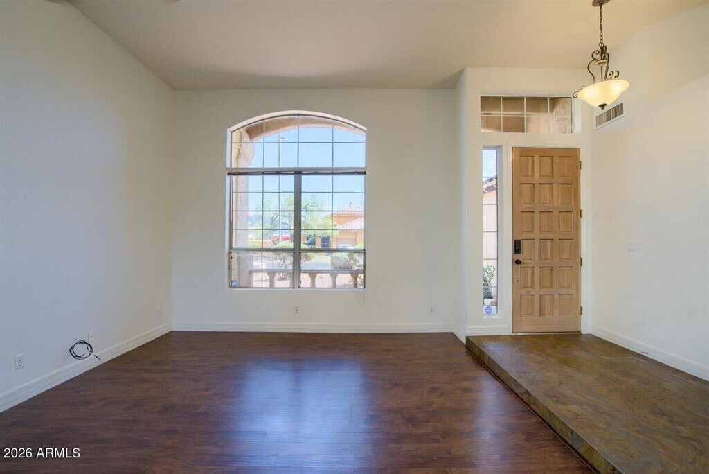 Bright and inviting 3 bed + 2 bath home for rent in the highly desirable Tatum Ranch community of Cave Creek, offering desert scenery with city convenience. The home features hardwood and laminate wood flooring, 12-ft vaulted ceilings, upgraded ceiling fans, a double-sided fireplace, washer and dryer, and a 2-car garage with storage cabinetry. The spacious master suite includes hardwood floors, a large walk-in closet, private patio exit, and a newly remodeled modern bathroom with dual-sink vanity and a walk-in glass shower with stone flooring; the second bathroom also features a new vanity. The kitchen offers granite countertops and stainless steel appliances, and the home has a new AC and water heater plus recently painted interior and exterior. The private backyard backs to a wash and open desert walkway with a view fence, extended covered patio, and peaceful natural views; landscaping and gardener are included. Located in a neighborhood within the Cave Creek Unified School District and approximately a 7-minute walk to Desert Willow Elementary School. Move in Requirements: 1 year lease agreement. First month's rent ($2800), security deposit ($2800), pet deposit if applicable ($1000) Key deposit: 2 garage openers, 2 sets of keys for house and mailbox ($150), Credit Screening ($40). No smoking on premises. No overnight parking on the street. Property includes a 2 car garage and 2 car driveway. Applicants must make at least 2x the required rent/month combined and must have good credit. Serious inquiries only via phone or email