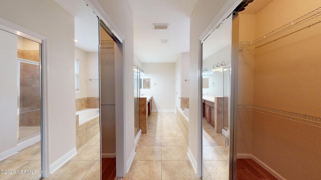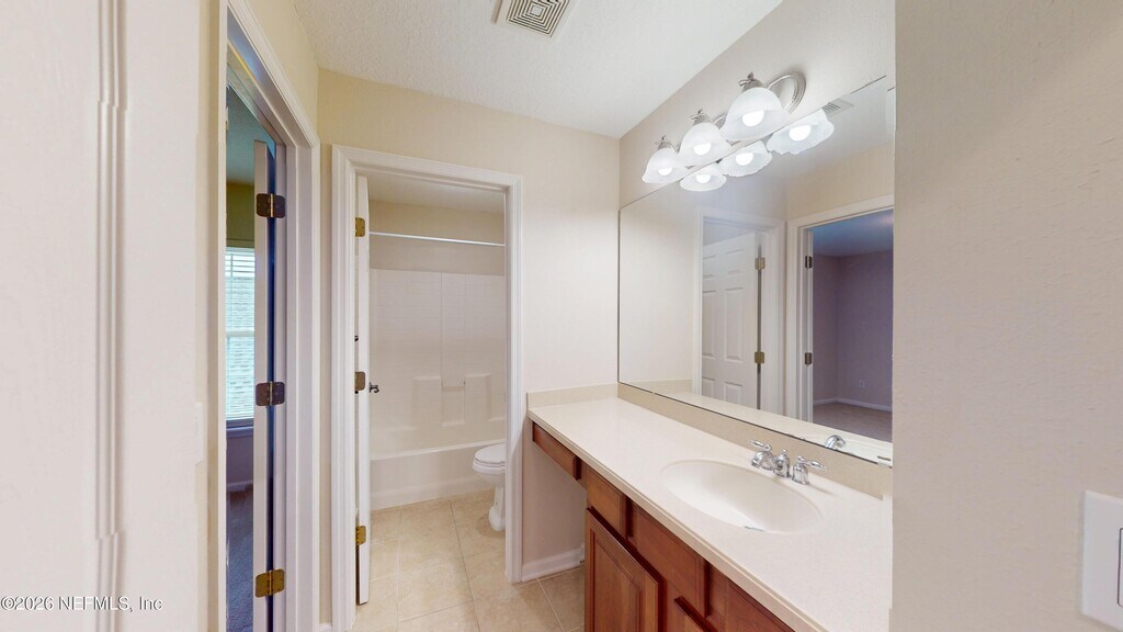 AVAILABLE NOW Spacious 5-bedroom,3.5-bathroom home offering nearly 3,300 sq. ft. of living space in the highly sought-after South Hampton community of St. Johns County. This well-designed home features formal living and dining areas,tile flooring throughout the main living spaces,and an open-concept kitchen with granite countertops,stainless steel appliances,42-inch cabinets,and a breakfast nook overlooking the family room. The primary suite is conveniently located on the first floor and includes dual closets,dual vanities,a garden tub,and walk-in shower. Upstairs features a large loft and four additional bedrooms,providing plenty of space for family or guests. Enjoy relaxing on the screened-in lanai and take advantage of resort-style community amenities including a pool,playground,tennis courts,soccer field,and splash park. Pets welcome upon approval; lawn care is tenant responsibility. MLS# 2130076