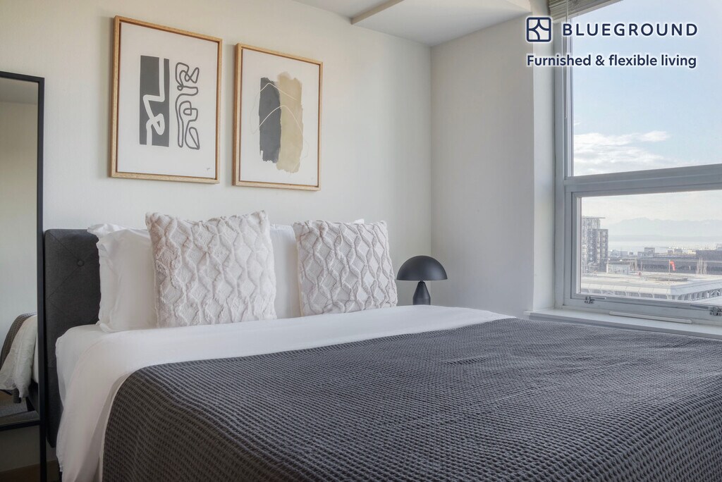 Feel at home wherever you choose to live with Blueground. You’ll love this roomy Belltown furnished one bedroom apartment with its modern decor, fully equipped kitchen, and exquisite living room with great views. Ideally located, you’re close to all the best that Seattle has to offer! (ID #SEA661) The advertised rate of $2,290/month is the lowest available price, based on a 12 month(s) stay with a move-in date of April 30, 2029. Rates vary depending on the duration of stay, season, and other parameters. For exact pricing and additional pricing components, please visit our website and enter your desired move-in and move-out dates. The rate is applicable when billed upfront; it can be higher if billed in multiple payments. Brokers are welcome to reach out. Were you looking for an unfurnished lease? Try Blueground instead and upgrade from unfurnished to furnished living: - Furnished at rates comparable to unfurnished - No setup or furniture costs - save thousands - Move-in ready - save time, just bring your suitcase Designed with you in mind Gorgeous furniture, fully equipped kitchen, smart TV, and a premium wireless speaker are just a few of the amenities you’ll find inside this one bedroom apartment. Ideally located in Seattle, you’ll find a lot to love outside as well. When you’re ready to relax, you’ll be happy to discover every Blueground bedroom comes with superior quality mattresses, fully stocked linens, and cozy towels. We handle everything so you can simply show up and start living. This apartment also offers in-apartment laundry. Sleeping arrangements Queen Bed, 63in/160cm Amenities Building amenities unique to this one bedroom apartment include an on-site: - Dryer - Elevator - Washing machine - Lounge - Parking - Pets allowed - Playground - Sauna Arrival and ongoing support The entire apartment is yours to enjoy! Throughout your stay, you’ll have access to our Client Experience team through the Blueground App. You can schedule additional cleanings, submit maintenance requests, and view our neighborhood recommendations with just a few taps. We’ll share all details upon confirmation of your stay. Ideally Located This furnished apartment is located in walkable Belltown. With an enviable proximity to the water, you will also find yourself striding distance to Amazon’s HQ, Pike Place, Denny Triangle and Lower Queen Anne. Belltown itself has no shortage of sushi bars, java joints and nightlife options concentrated along 1st and 2nd Avenues. Connect yourself to the rest of the city with local buses, the South Lake Union Streetcar and the area’s protected bike lanes. Runners will love starting their jog at the Olympic Sculpture Park as the Elliott Bay Trail extends northwards. Other things to note Building amenities may have an extra cost. This Blueground apartment has flexible lease options, allowing you to book it for one month, a year, or more. Pets are welcome, though weight limits and breed restrictions apply and may incur fees. Parking is offered based on availability and is subject to a fee. We take great pride in ensuring every photo displayed is shot in our own units with our actual furnishings. That said, we regularly refresh our decor and furniture arrangement, which may differ from what’s pictured. [SI]