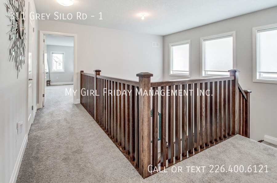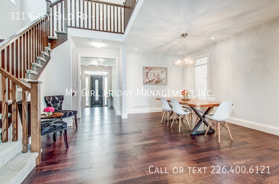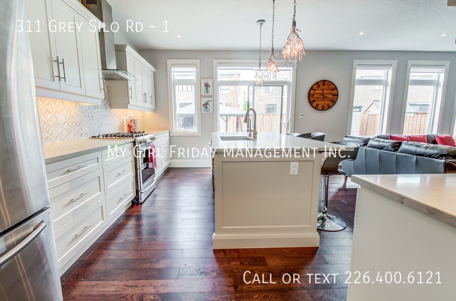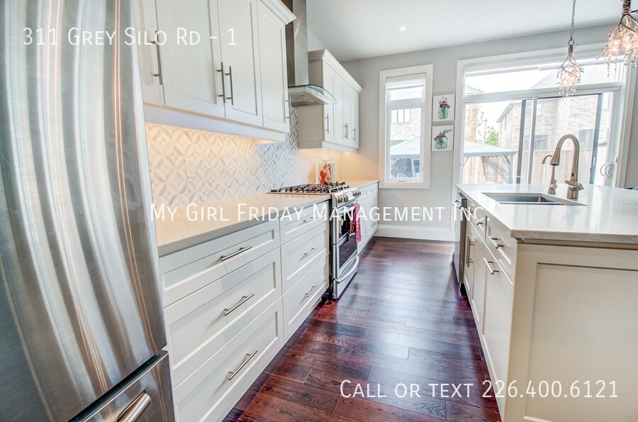 311 Grey Silo Road is a stunning, custom Heisler home located in the highly sought-after Carriage Crossing Neighborhood! It is walking distance to RIM Park, The Walter Bean Grand River Trail, Grey Silo Golf Course, Eastside Branch of Waterloo Public Library and numerous other amenities. This property boasts a double wide, interlocked driveway with a fully fenced yard featuring stone patio, gazebo, and lots of yard space – this four-bedroom home will not last long! The main level offers a spacious entryway that opens into the dining area, and a large kitchen with quartz countertop, marble backsplash, a large island, a walk-in pantry and energy star appliances featuring a gas range with dual fuel technology and split oven. The kitchen flows into a sizable Great room with 9 ft, California-textured ceilings, bullnose drywall corners, and large windows for ample natural lighting. Upstairs, you will find four bright, spacious bedrooms and 2 full bathrooms, complete with his and hers sinks, walk-in shower, in addition to a standalone bathtub and a roomy walk-in closet in the principal bedroom. This level has plenty of space for studying and activities for growing children or the perfect home office. This house comes fully loaded with front load washer and steam dryer with sanitization feature, humidifier in furnace, hardwood on main floor, fibre optic internet offered by Bell, hard wired Wi-Fi extender on 2nd floor for increased coverage, soft close cabinets throughout the house, LED undercabinet lighting, and a walk-in closet on the main floor.