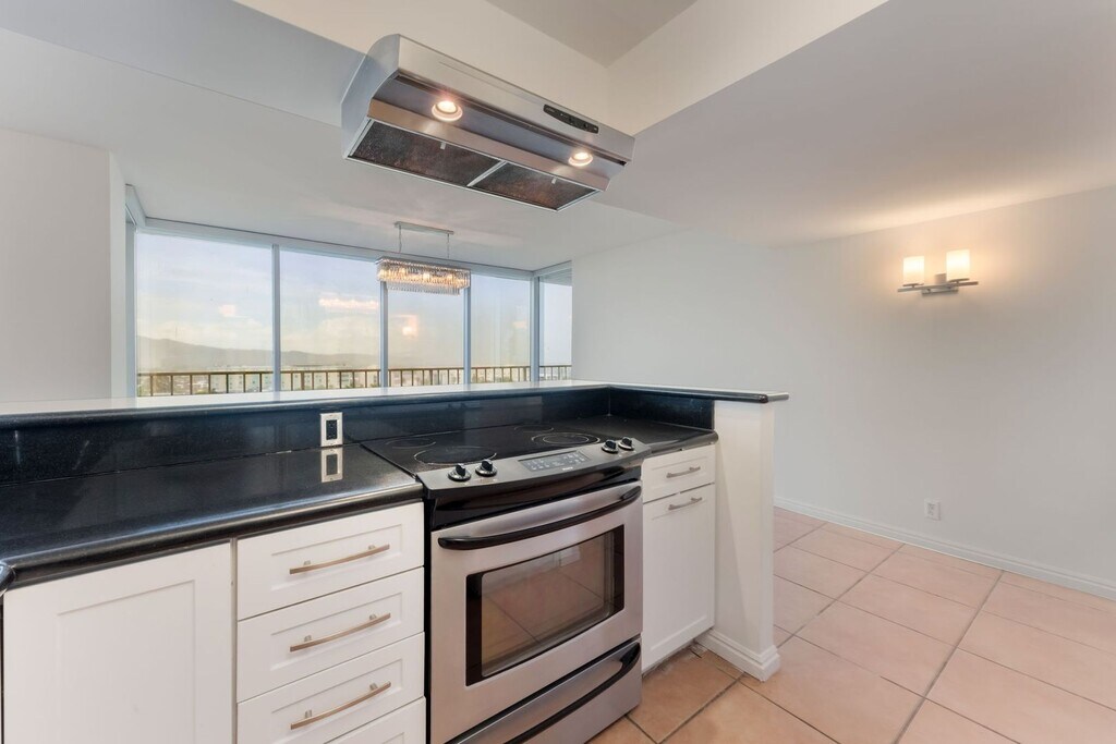 Experience high-rise living on the 11th floor of Regency Towers in the Las Vegas Country Club. This remodeled 3-bedroom residence offers sweeping views of the golf course, Strip, downtown, and surrounding mountains through floor-to-ceiling windows and a spacious wrap-around balcony accessible from every room. The kitchen is equipped with stainless steel appliances, granite countertops, a breakfast bar, and ample cabinetry. The primary suite features a custom walk-in closet and a luxurious bathroom with a tiled standing shower and an additional vanity seating area. The one of the guest bedrooms includes a built-in desk and cabinetry, while the two guest rooms are connected by a Jack and Jill bathroom. Residents enjoy top-tier amenities including 24-hour concierge, valet, security, pool, spa, fitness center, tennis courts, BBQ area, and both underground assigned and guest parking. - Includes cable, WiFi, trash, water, sewage, gym, and pool/sauna access.