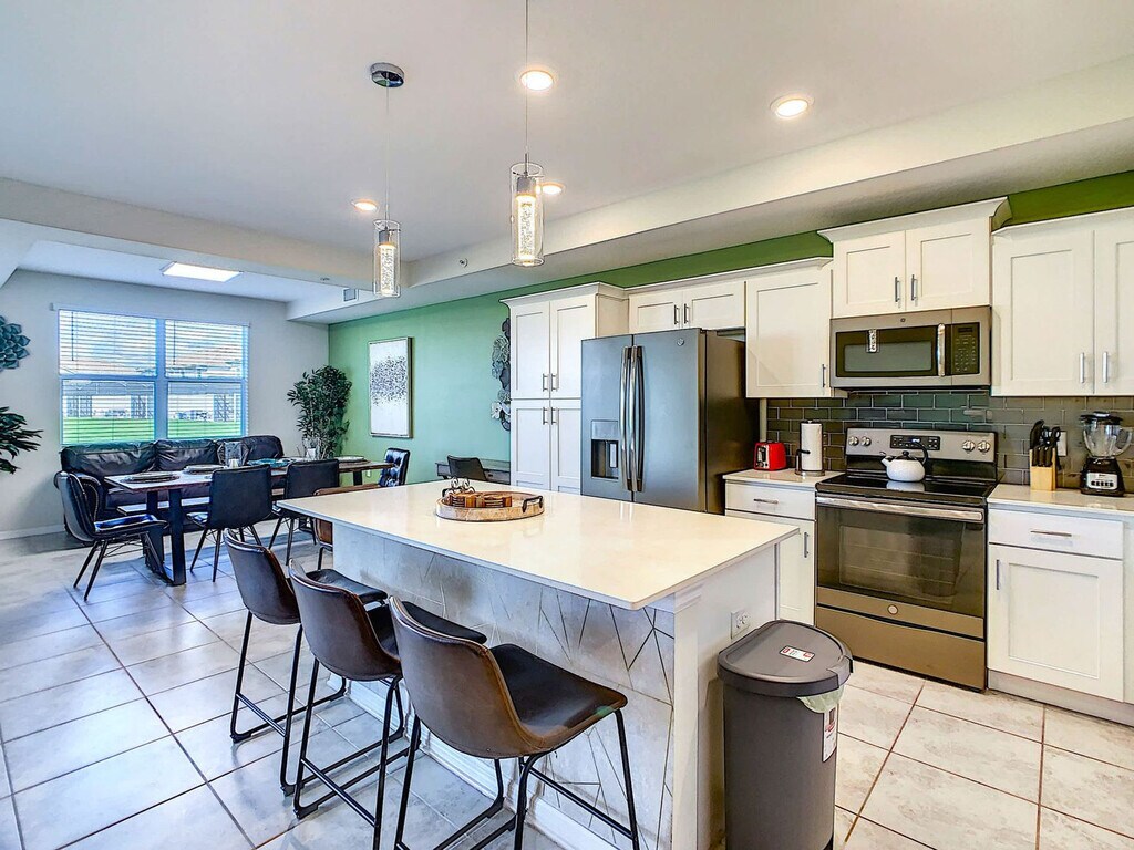 Experience the excitement of the new Epic Universe park this May 22nd with unbeatable comfort just minutes away in this fresh condo at Storey Lake resort. Perfect for a comfortable and relaxing stay, this home offers easy access to world-famous attraction parks, restaurants, and shopping malls within minutes. The property features a master bedroom with a king-size bed, a thematic Star Wars bedroom with two single beds and one double bed, and a fully equipped kitchen with an island, dining room for six, and a living room with a smart TV. Visitors at Storey Lake enjoy unlimited access to resort amenities, including two luxury clubhouses, a gym, spa center, heated swimming pools, lazy river, beach volleyball field, basketball, and mini-golf for an additional fee. The property comes with a fully equipped kitchen, air conditioning, bed linens, three smart TVs with cable, patio furniture, hair dryers, washer/dryer, ironing supplies, free parking, and high-speed internet. Mini-golf and lagoon for kayak access are available for an additional fee. Optional services such as pack and play, high chair, early check-in, and late check-out are available at an extra cost. Please inquire prior to acquiring any service to check availability. Located near major attractions, this condo is 6.7 miles from Disney Springs, 8.8 miles from SeaWorld Parks, 12 miles from Universal Studios, and 5 miles from Disney World. The Orlando International Airport is 21.1 miles away, and the Orange County Convention Center is 9.5 miles away. For shopping, The Loop Shopping Center is 3.3 miles away, and Orlando International Premium Outlets are 13.5 miles away. Transportation options include the SunRail Station 5.2 miles away, with Uber and Lyft available. Nearby supermarkets include Super Walmart 0.8 miles away and Super Target 3.8 miles away. Guests must be at least 18 years old to book a reservation. No unregistered guests, smoking, or pets are allowed inside. The house is exclusively for vacation use and filming is not allowed without prior authorization. The property is keyless, with a code provided prior to check-in. Our team is available from 6 am to 11 pm to assist with any questions. A safety protocol is in place to ensure the well-being of guests and personnel, with pre-check-in cleaning and check-out care following WHO and HSE standards.