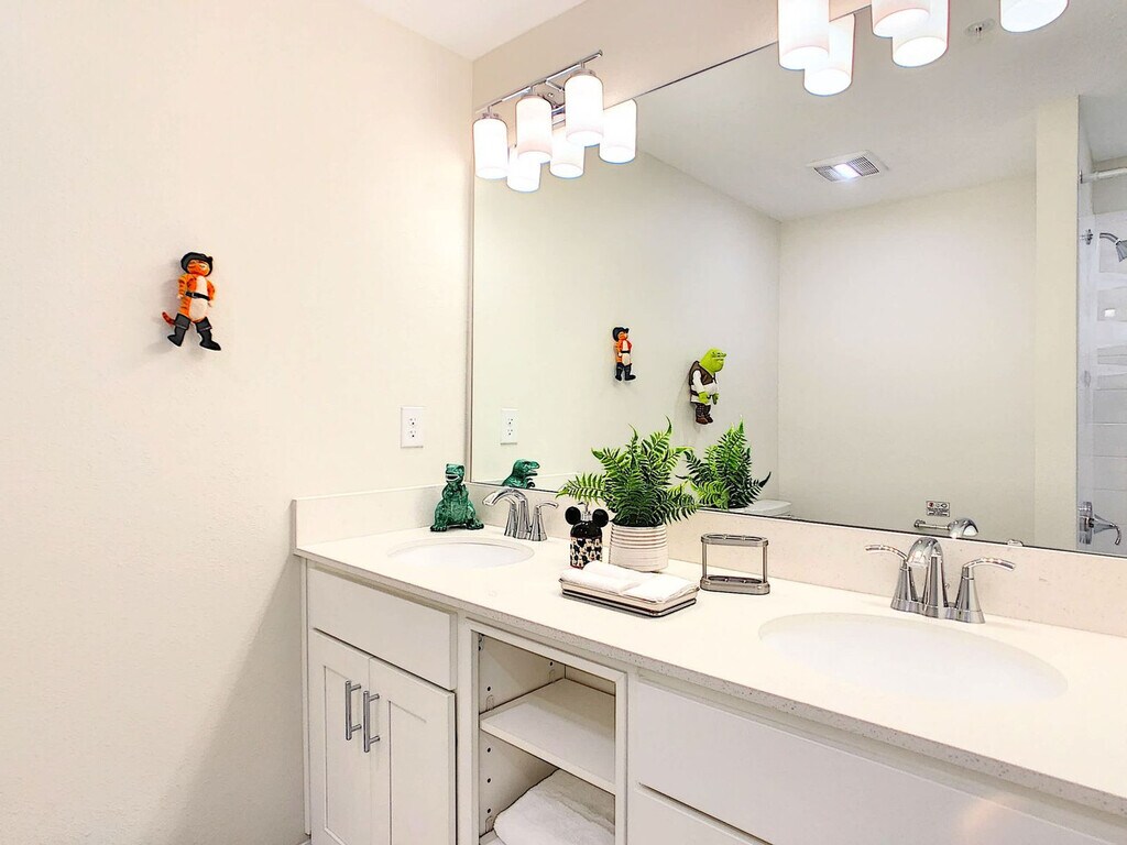 Experience the excitement of the new Epic Universe park, just minutes away from this dazzling condo at Storey Lake resort. Perfect for a comfortable and relaxing stay, this home offers beautiful lake views and is steps away from the main clubhouse. This condo provides unlimited access to two luxury clubhouses and features a fully equipped kitchen, AC, laptop workspace, bed linens, three smart digital-cable TVs, patio and balcony furniture, hair dryers, washer and dryer, ironing supplies, free parking on premises, and high-speed internet. The master bedroom includes a king-size bed, smart TV, and bathroom, while the thematic Shrek bedroom offers a bunk bed with two single beds and one double bed, along with a TV. The living room is equipped with a smart TV and a sofa bed, and the dining room accommodates six people. Guests can enjoy amenities such as a gym, spa center, heated swimming pools, lazy river, beach volleyball field, basketball, and mini-golf for an additional fee. Lagoon kayaking is also available for an extra charge. Optional services include Pack and Play, high chair, early check-in, and late check-out, all available at an extra cost. Located at Storey Lake resort, guests can easily access world-famous attraction parks, restaurants, and shopping malls within minutes. Nearby attractions include Disney Springs (6.7 miles), SeaWorld Parks (8.8 miles), Universal Studios (12 miles), and Disney World (5 miles). The Orlando International Airport is 21.1 miles away. For shopping, The Loop Shopping Center is 3.3 miles away, and Orlando International Premium Outlets is 13.5 miles away. Transportation options include the SunRail Station, 5.2 miles away, with Uber and Lyft available. Supermarkets like Super Walmart and Super Target are conveniently located nearby. Guests must be at least 18 years old to book a reservation. No unregistered guests, smoking, or pets are allowed inside. The house is exclusively for vacation use and filming is not allowed without prior authorization. The property is keyless, with a code provided prior to check-in. A safety protocol is in place to ensure the well-being of guests and personnel, with pre-check-in cleaning and check-out care following WHO and HSE standards. Guests are expected to take care of the home as they would their own. Includes a laptop workspace and high-speed internet, making it ideal for remote work.