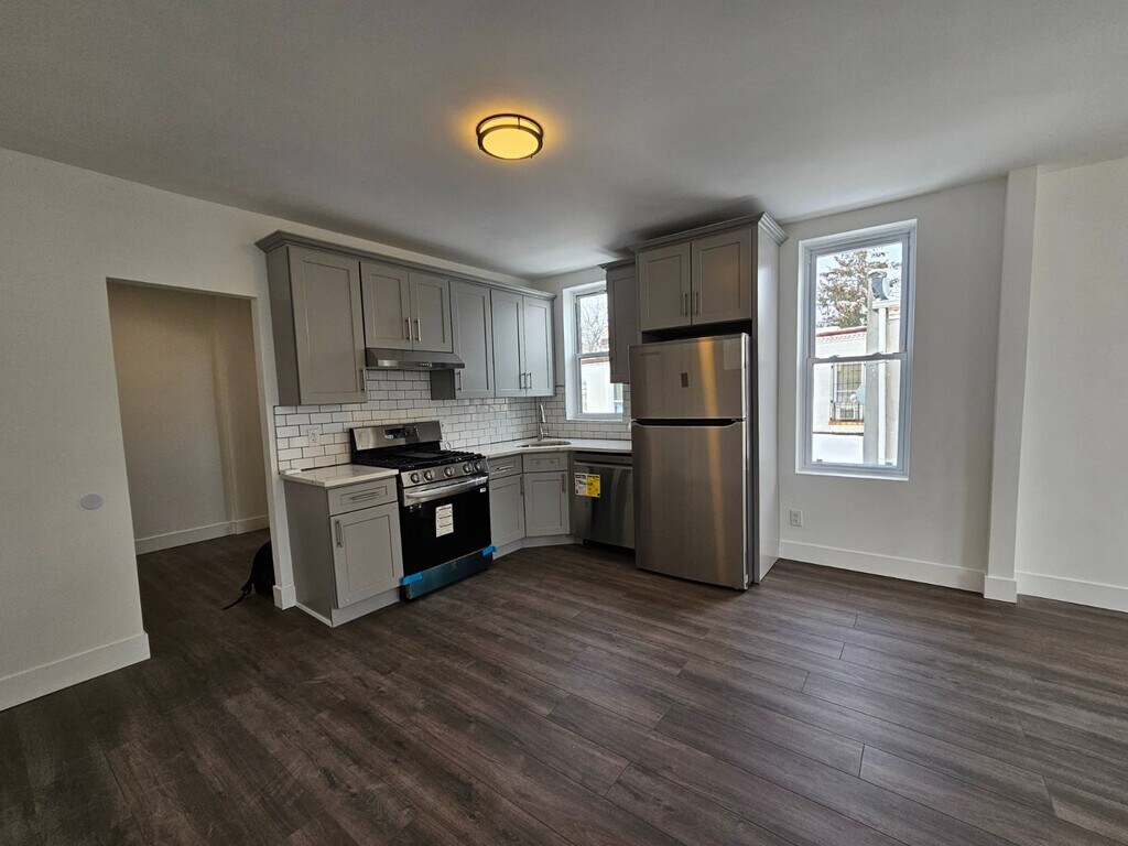 Brand new, blank slate to call your own. This unit has been gut renovated head to toe. The apartment is the top floor unit of a semi-detached townhouse flooded with sunlight from its many windows. Sundrenched Apartment #2 has 11 windows and two entrances illuminated by a beautiful original skylight in the entryway. The first entrance opens into a massive ˜28'x10' open layout living/dining area with fully equipped eat-in-kitchen, 5 windows, and ˜10'x7.5'front bedroom with an additional window and closet. The second entrance leads directly to the kitchen, an ˜8'x8.5' flex space, main bath, and hallway to 2 rear bedrooms. The brand new corner kitchen has 2 full windows, new cabinets, countertops, and tiles, and is equipped with stainless steel appliances, including dishwasher, 5-burner range with air fryer, and an actual range-hood. Behind the kitchen is an open 8'x8.5' open flex space that can be used as an office, play room, dressing room or whatever you wish. The 2 Queen-sized windowed bedrooms include a ˜13'x7.75' bedroom and ˜13'x9.5' en suite bedroom with full windowed bathroom. This apartment offers so much space for any life-work configuration. Flatbush is also one of the best neighborhoods in Brooklyn. Local eateries, cafes and restaurants reflect the cultural stew of the neighborhood with an unending list of food cultures to explore. Although East 26th is a quiet residential street, it's surrounded by all the neighborhood conveniences--restaurants, bars, lounges, supermarkets, gym, laundromats, gas stations, etc. Neighborhood highlights include the King's Theatre 10 minutes away, proximity to Flatbush, Church and Tilden Avenue shopping, and a nice stroll to the Flatbush Food Coop, Prospect Park and Parade Grounds. Transportation includes the 2/5 trains at Beverly Road or Newkirk Avenue, both 6 blocks away, steps to several buses including the B44 Select, B44 local, B49 and B41, and a 20min walk to the B/Q at Church Avenue. This neighborhood is charming and super convenient! Other Details: Landlord pays Hot Water; tenant pays Electricity and Heat. The unit has Central Air controlled by tenant. Pets approved by Landlord on a case-by-case basis. Landlord reserves the right to charge tenant a Pet Fee for approved pets. Please contact agent via email or text to arrange a private showing. Please provide combined household income, number of intended occupants and pets, if any, prior to viewing. After viewing, applicants approved by owner must complete an application form and pay a non-refundable $40 application fee to conduct a full background check prior to lease signing. NO BROKER FEE!