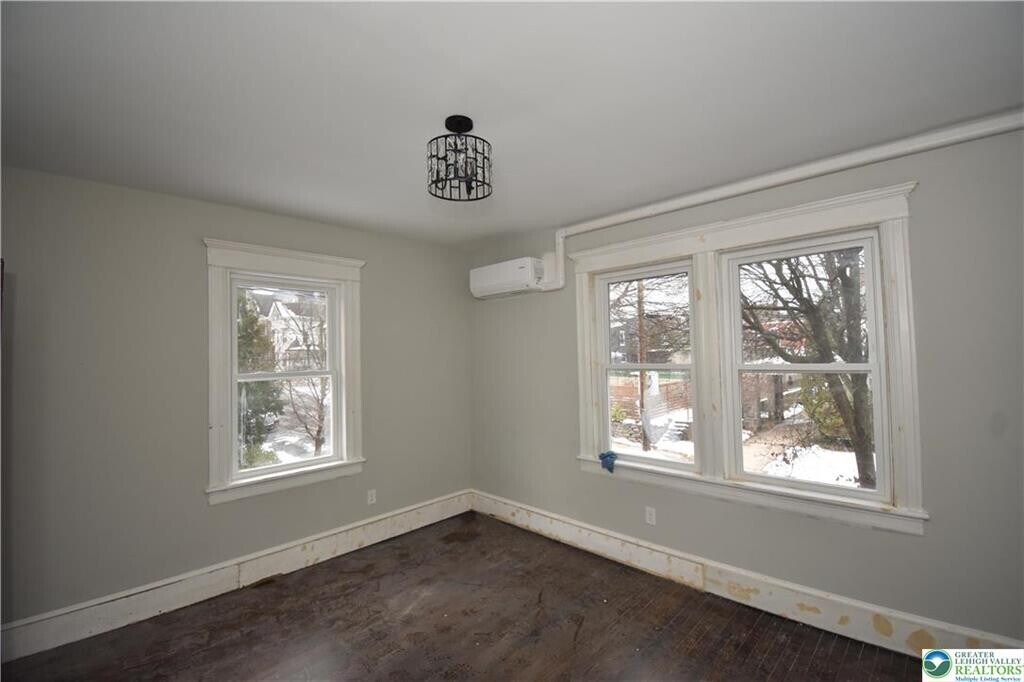 Nice 1 bedroom apartment recently finished with all new windows, hardwood floors and central air. Kitchen with dining area with access to back covered porch. Back staircase access to back yard. Tenant pays utilities.