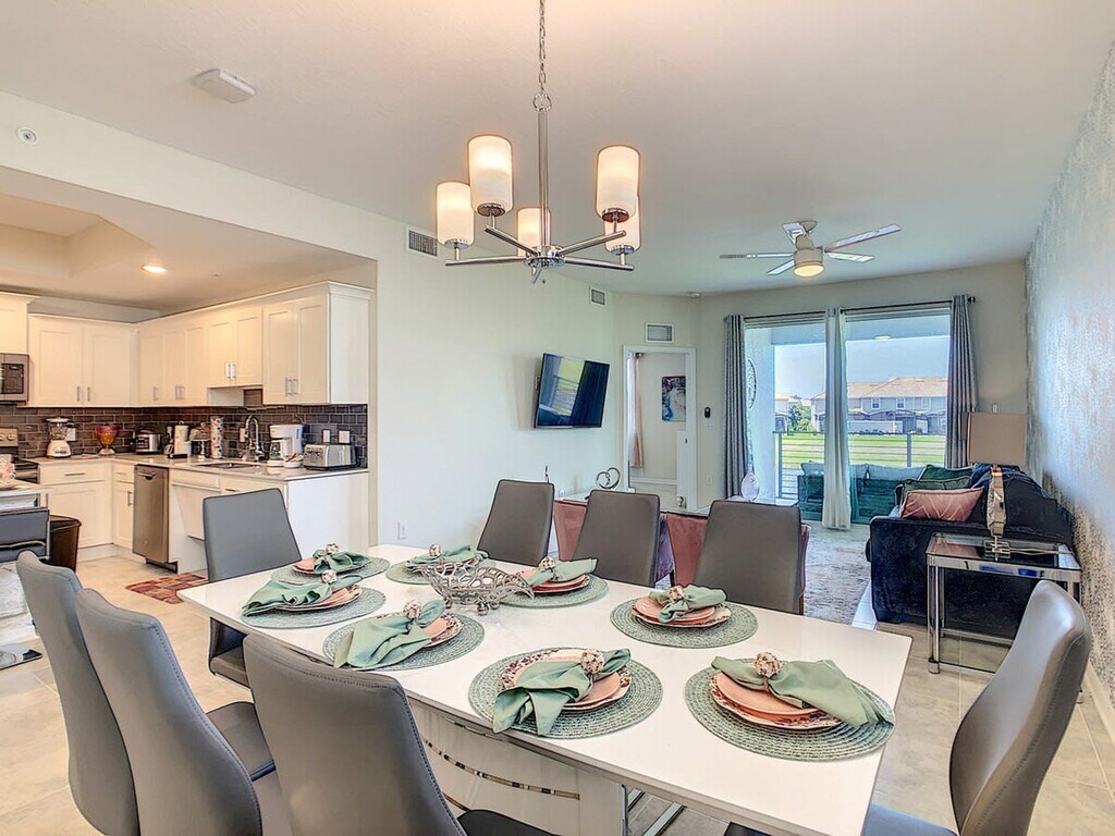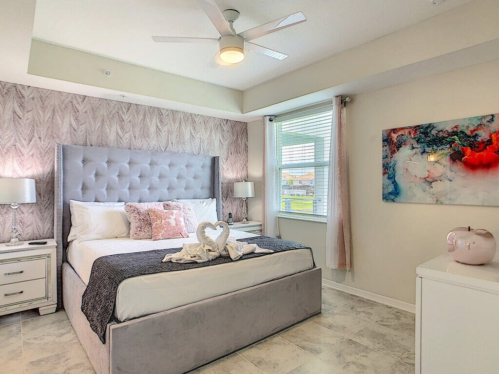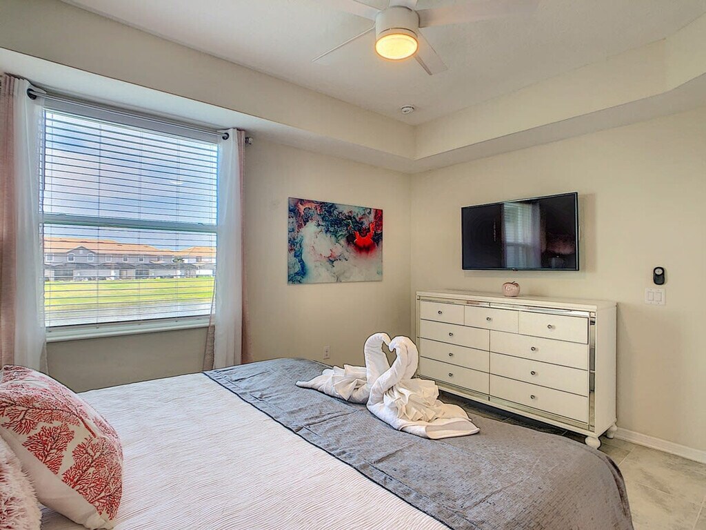 Experience the perfect Orlando getaway in this comfortable and convenient 2-bedroom, 2-bathroom apartment, ideal for families or groups of up to 6 guests. The spacious living area invites you to relax, while the well-equipped kitchen makes mealtime a breeze. After a day of adventures, unwind on the private balcony and soak in the peaceful surroundings. Located in the sought-after Storey Lake Resort, just 10 minutes from Disney, this property offers access to incredible amenities, including pools, a lazy river, a fitness center, and more. With markets, restaurants, and stores nearby, everything you need for a memorable stay is at your fingertips. Make this your home away from home on your Orlando vacation! Welcome to this beautifully designed 2-bedroom, 2-bathroom condo, thoughtfully crafted for your comfort and relaxation. The open-concept living area seamlessly connects to the dining space and fully equipped kitchen, creating a perfect setting for family gatherings and meals. After a fun-filled day at the parks, unwind on the private balcony and enjoy the refreshing breeze. The master suite features a luxurious king-size bed, providing a peaceful retreat, while the second bedroom offers a bunk bed with two double beds, perfect for kids or additional guests. Each bedroom is paired with a well-appointed bathroom for added convenience. A laundry room with a washer and dryer is included to make your stay hassle-free. Stay connected with complimentary Wi-Fi, enjoy the ease of free parking, and get started with our welcome kit, stocked with essential bathroom and kitchen supplies. With its modern amenities and family-friendly layout, this condo ensures a comfortable and enjoyable Orlando getaway for everyone. Guests are responsible for replenishing amenities during their stay. Nestled within Storey Lake Resort, this prime location places you only 10 minutes away from Orlando's major attractions and theme parks, including Walt Disney World, Universal Resort, and SeaWorld. The resort itself boasts an array of family-friendly amenities, from a tiki bar to an expansive resort-style pool with slides and a relaxing lazy river. Sports enthusiasts will appreciate the sports court and mini-golf, while those seeking adventure can enjoy kayaking. A well-equipped fitness center awaits those who want to stay active. Adjacent to the buildings, you'll discover an inviting pool, and within the resort, two clubhouses offer additional options for entertainment. Among these, a themed pirate pool is a highlight, sure to delight kids and families. Moreover, the resort's strategic location just off Osceola Parkway ensures easy access to an array of restaurants, shopping centers, and supermarkets, all reachable within a mere 5-minute drive. Your perfect vacation awaits at Storey Lake Resort! Quiet hours are between 22:00 and 8:00. [SI]