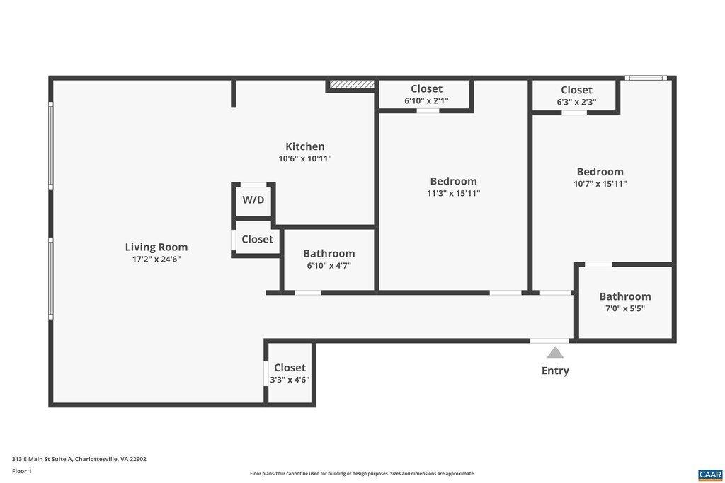 Move-in Ready! Experience the best of Downtown Charlottesville in this 2 bedroom, 2 bath apartment located right above Kilwins Ice Cream on the Historic Downtown Mall. This apartment blends classic charm with modern convenience—ideal for anyone looking to live steps away from the city's best restaurants, shops, and entertainment. Just minutes from S&P Global, the CODE building, and UVA Medical Center. The 1,175 sqft apartment features original hardwood floors and high ceilings throughout, a light-filled living/dining room with large windows overlooking the vibrant Downtown Mall, and a fully-equipped kitchen with a refrigerator, oven, dishwasher, and a stack washer/dryer unit. Two bedrooms, one with its own private bath, and a second full bath are set along the hallway. Wake up to the sounds of the city and enjoy coffee on the Mall, catch live music or a theater production in the evenings, and treat yourself to a Kilwins cone just downstairs. Perfect for professionals, grad students, or anyone who wants to immerse themselves in the culture and convenience of downtown living. Rent includes: water/sewer. Occupancy is limited to no more than 2 unrelated individuals. No undergrads allowed. Monthly permit parking is available in the Market St and Water St parking garages. For the latest availability and to purchase a permit, please contact the City's parking management directly. A 3D tour is available for viewing This property is within the following school district: * Sunrise (formerly Burnley-Moran) Elementary * Walker and Buford Middle * Charlottesville High No smoking is allowed at the property. One small full-grown dog (35lbs max) is allowed with a non-refundable $250 pet fee, plus a monthly $25 pet rent. Some breed restrictions apply. No cats allowed. Upon lease signing, there is a security deposit of one month's rent due.