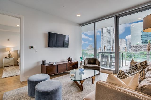Impossible Views. Incomparable Quality. Welcome to Bleu Ciel. An urban oasis in the heart of the city, this stylish home has unobstructed views of Downtown & Victory Park. Large 30' terrace with Gas Fireplace is utilized as an outdoor living environment, overlooking the Resort Style Pool & Hot Tub. The kitchen, featuring Miele appliances, Porcelanosa cabinetry & Marble countertops open to the living and dining rooms. Floor to ceiling walls of glass blur the distinction between inside & out. White Marble bathrooms, 2 custom walk-in California Closets, wide plank wood floors throughout, automated blinds, full laundry room includes washer & dryer, 2 car private garage & climate-controlled storage unit. 24-7 Valet-Concierge. World class Spa & Fitness Center. Direct access to Katy Trail.