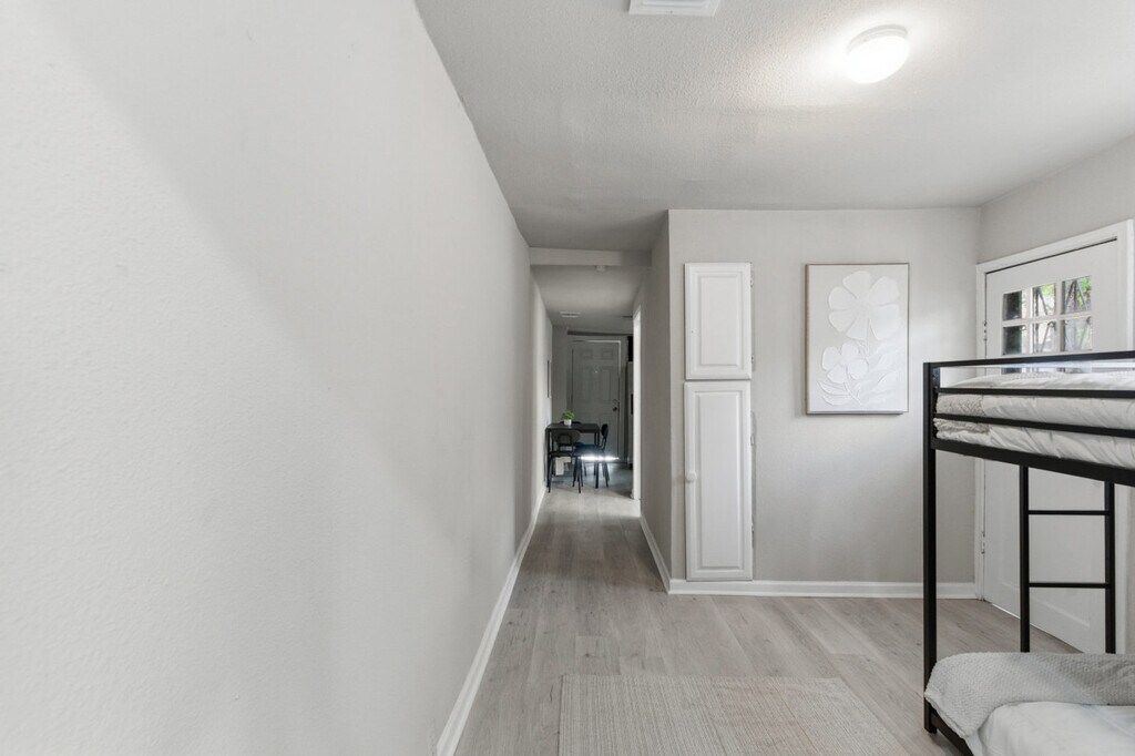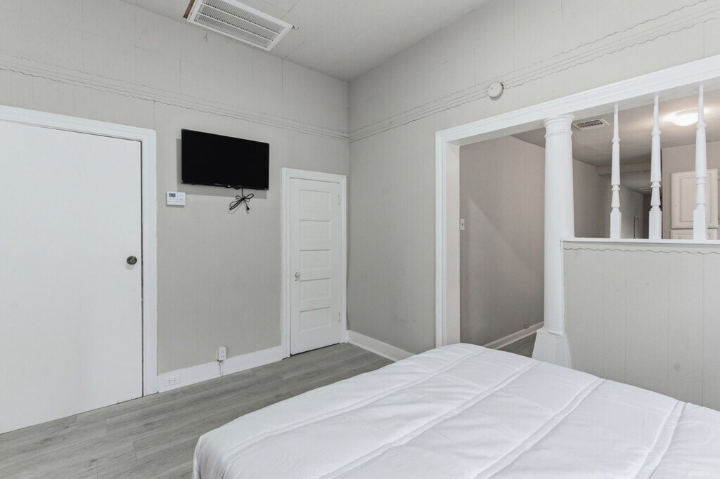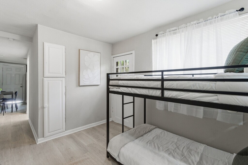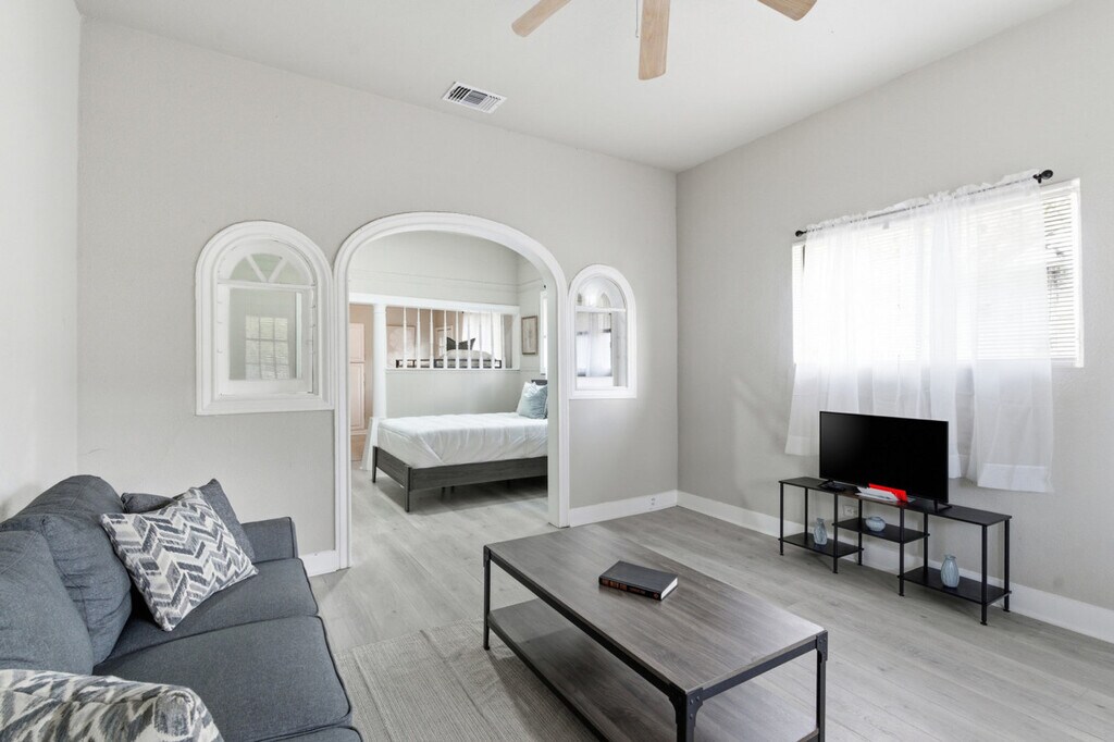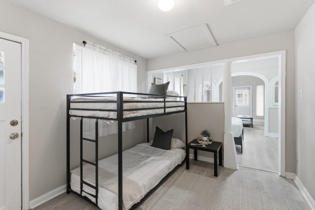 Enjoy a bright and comfortable stay in this refreshed duplex unit with its own private entrance, located just minutes from downtown San Antonio. Feel at home in this property. The home features a cozy bedroom, an additional bunk area, a simple kitchen set-up with a full-size fridge, stove, microwave, sink, and basic cookware, and a welcoming living room with a sofa, coffee table, and TV to unwind after exploring. There is a dining area with seating for four and a renovated bathroom with a walk-in shower and essentials. The apartment has ample natural light throughout. Located in San Antonio’s Cevallos district, this home sits just minutes from downtown, the River Walk, Blue Star Arts Complex, and Southtown. The area blends residential streets with lively restaurants, cafés, breweries, and creative spaces. Expect a walkable, urban neighborhood with character and quick access to major attractions. The Alamo is approximately a 10-minute drive, the River Walk is approximately an 8-minute drive, the Pearl District is approximately a 9-minute drive and the AT&T Center is approximately a 12-minute drive. The nearest grocery store (H-E-B) is approximately a 3-minute drive or a 15-minute walk, and the bus stop is approximately a 15-minute walk. No smoking is allowed in the property and its vicinity. No parties, events, or large gatherings are allowed. [SI]