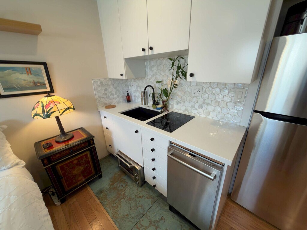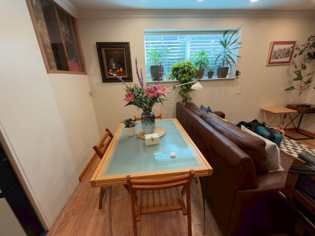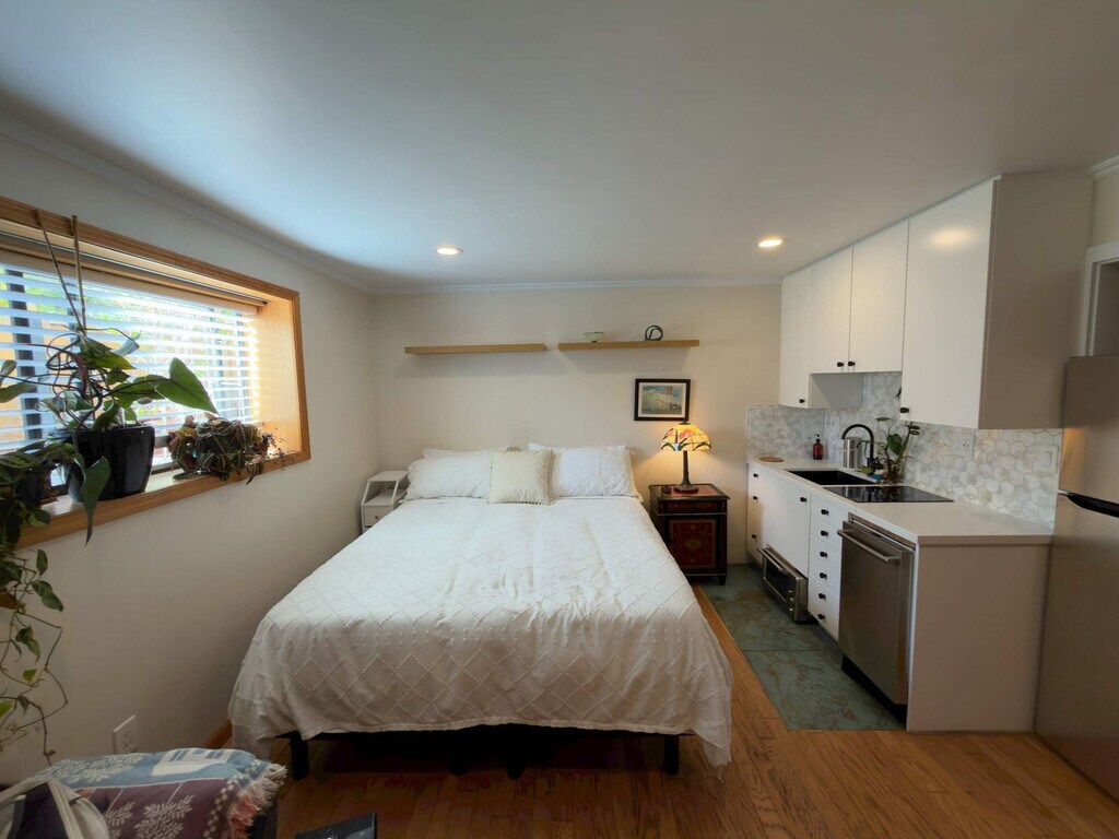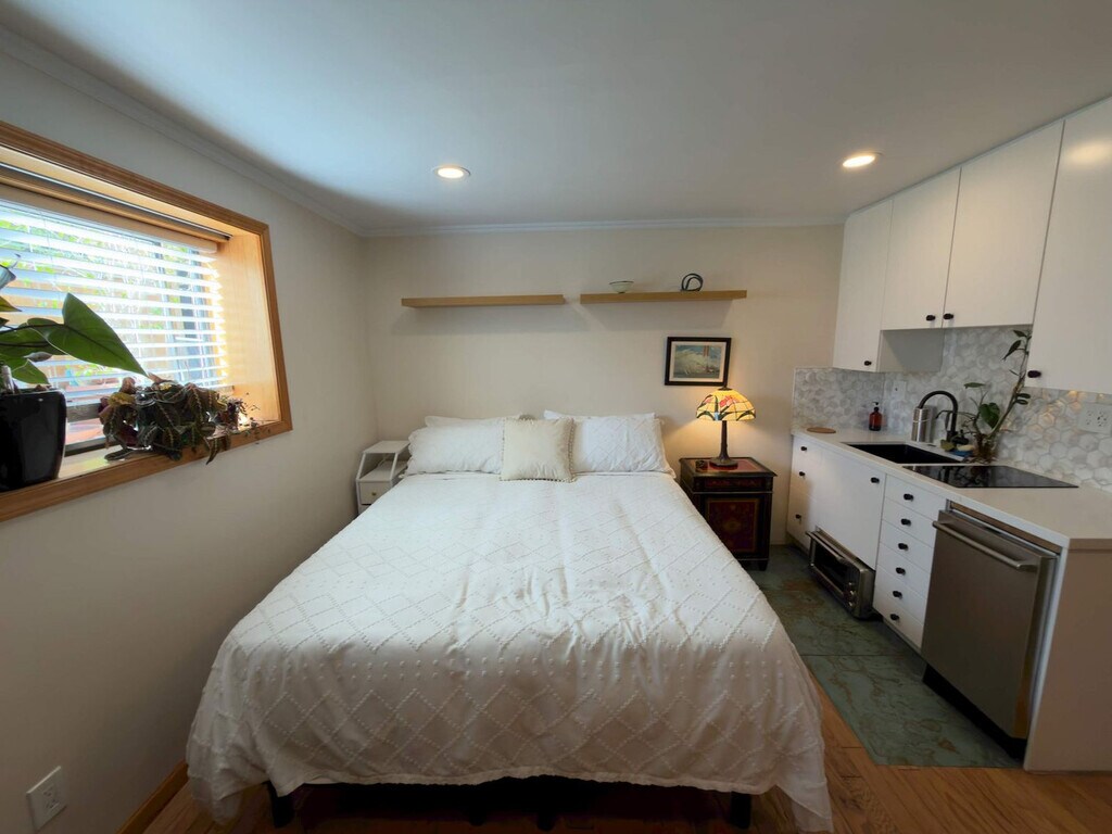 Feel at home in this light-filled flat in the heart of Elmwood and Rockridge. This space features 2 bedrooms, a spacious living-dining area, and a beautifully designed kitchen. The expansive living area is filled with natural light and includes a pool table that converts into a dining table. The fully upgraded kitchen features high-end appliances and is well equipped with cookware, utensils, and essentials. The spa-inspired bathroom features custom tile work and a luxury TOTO bidet. Guests have access to a shared garden area featuring a hot tub, fire pit, and cozy seating. Paid parking is available on premises and EV charging is available. Located on College Avenue, where Berkeley’s Elmwood neighborhood blends seamlessly into Oakland’s iconic Rockridge, this home is in one of the most desirable and walkable areas in the entire Bay Area. This stretch of College Avenue is known for its vibrant atmosphere, lined with restaurants, cafés, bakeries, wine bars, bookstores, boutiques, flower shops, and specialty food markets. With easy access to BART and major thoroughfares, getting around the Bay Area is fast and convenient. UC Berkeley, downtown Oakland, and many of the region’s top destinations are all within easy reach. Smoking is permitted outside only and the space is intended for quiet enjoyment. [SI]