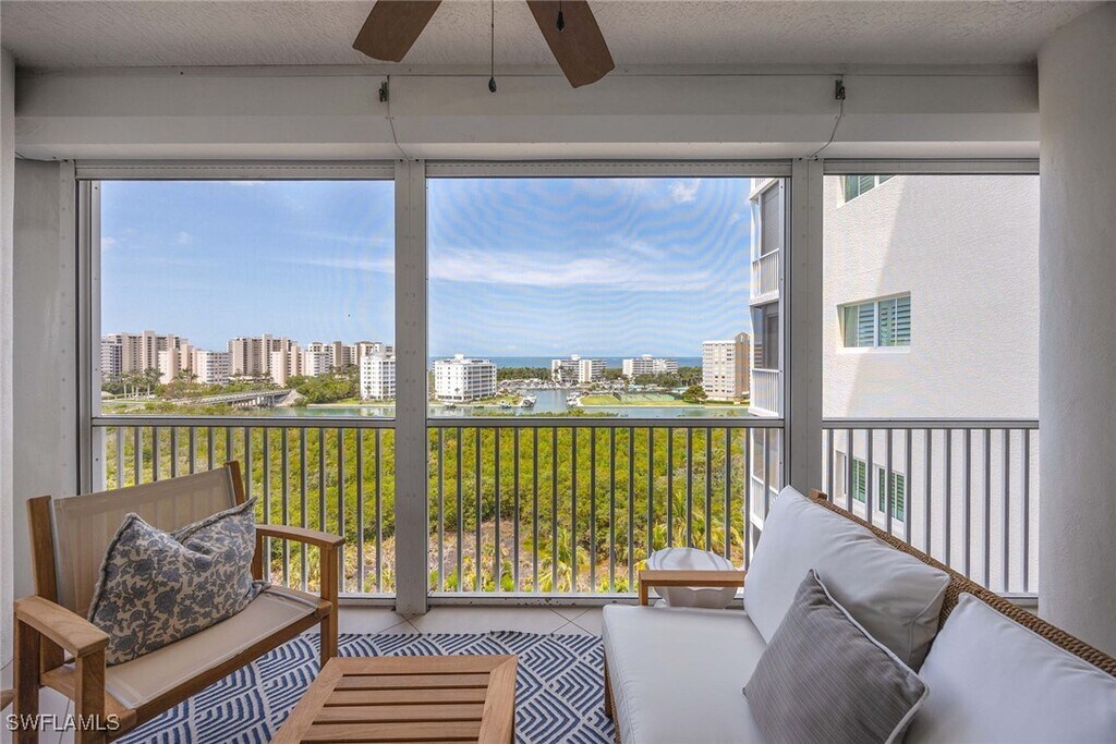Experience luxury and coastal elegance in this exquisite 3-bedroom,3-bathroom residence at the highly desirable Barbados tower within the The Dunes in Naples. Spanning 2,187 square feet,this end-unit condominium offers panoramic views of the Gulf of Mexico,Wiggins Pass,and lush mangroves from its expansive wrap-around screened balcony. The interior boasts an open-concept design with high ceilings and abundant natural light,as well as new flooring and luxury coastal furnishings throughout. The recently renovated kitchen features quartz countertops,custom cabinetry,and stainless-steel appliances,perfect for culinary enthusiasts. The primary suite includes a spacious walk-in closet and a luxurious en-suite bathroom with dual vanities,a soaking tub,and a walk-in shower. Elegant finishes enhance the unit’s sophisticated ambiance. Residents of Barbados enjoy resort-style amenities,including a private heated pool,spa,fitness center,tennis courts. Located just minutes from the pristine beaches of Delnor-Wiggins Pass State Park and Vanderbilt Beach,this residence offers the perfect blend of tranquility and convenience.