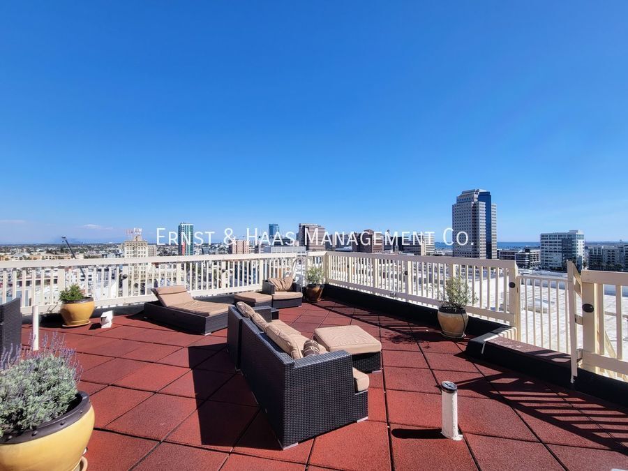 This beautiful city view studio condo is located in the historic Willmore Building, an 11-story Italian Renaissance Revival that was originally built in 1925 and named to honor William E. Willmore, an early city pioneer. The L-shaped building consists of an 11 story north wing and a 10-story west wing. Amenities include an amazing rooftop deck lounge that offers some of the best views of the city, stretching from the Pacific Ocean to the San Gabriel Mountains, along with a roof-top solarium that may be reserved for events. Controlled entry and a beautiful guest lobby are just some of the features of this wonderful community. Unit 507 boasts a spacious main living area that features hardwood flooring, a bright & fresh paint scheme, a ceiling fan, and an open, free-flowing floor plan that leads to a galley kitchen and attached bathroom. The living room also offers wonderful views of the city and mountains from the 5th floor facing east. The main living area connects to a bedroom nook, equipped with a built-in murphy bed cabinet, that when folded up, allows full use of the space. The updated kitchen has been remodeled to include shaker style wood cabinets, quartz counters, metal shelving, and is equipped with a stove, dishwasher and refrigerator. Enjoy the convenience of water, trash removal, gas, and electricity all included! Don't miss out on this amazing opportunity to make this beautiful place your new home! For more information on this or any other available property, please contact Ernst & Haas Management at or visit us online at