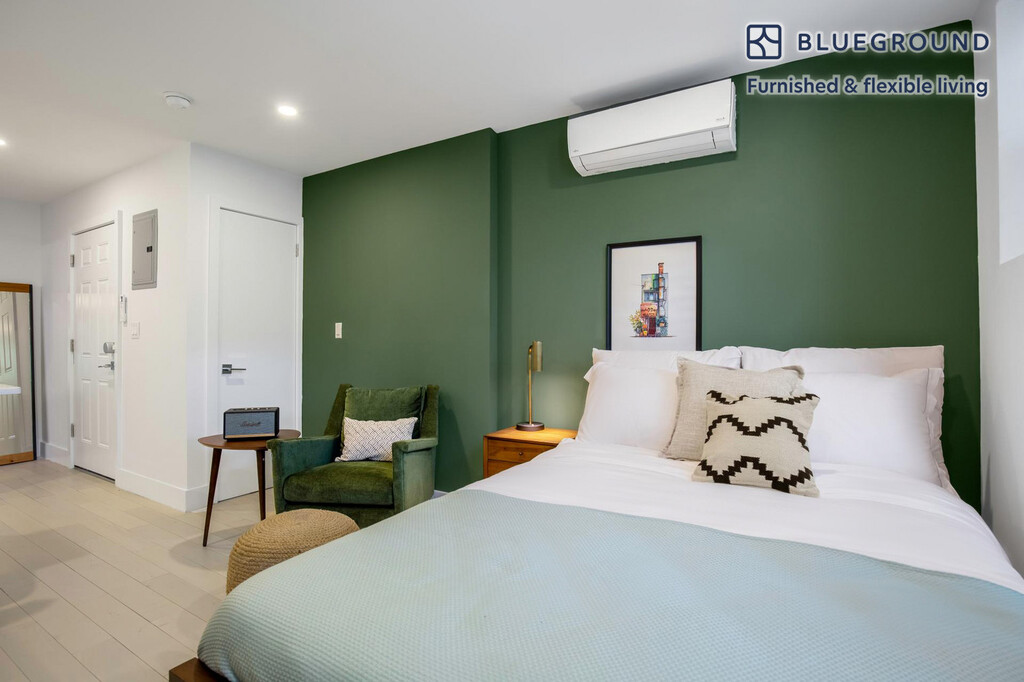 Show up and start living from day one in New York with this charming studio Blueground apartment. You’ll love coming home to this thoughtfully furnished, beautifully designed, and fully equipped Ukrainian Village home. (ID #NYC878) The advertised rate of $3,750/month is the lowest available price, based on a 1 month(s) and 27 day(s) stay with a move-in date of January 5, 2026. If you’re looking for a 1-year stay, the rate is $4,070/month. Rates vary depending on the duration of stay, season, and other parameters. For exact pricing and additional pricing components, please visit our website and enter your desired move-in and move-out dates. The rate is applicable when billed upfront; it can be higher if billed in multiple payments. Brokers are welcome to reach out. Were you looking for an unfurnished lease? Try Blueground instead and upgrade from unfurnished to furnished living: - Furnished at rates comparable to unfurnished - No setup or furniture costs - save thousands - Move-in ready - save time, just bring your suitcase Designed with you in mind Thoughtfully designed with bespoke finishes, modern furnishings, and a fully equipped kitchen, you’ll enjoy that “I’m home” feeling with this Blueground apartment. Whether you’re lounging in your spacious living room streaming the latest and greatest entertainment on the smart TV or premium wireless speaker, or getting some well-earned rest on the superior quality mattress with luxury linens, you’ll fall in love with everything this Ukrainian Village apartment has to offer. This apartment also offers in-apartment laundry. Sleeping arrangements Queen Bed, 63in/160cm Amenities Building amenities unique to this studio apartment include an on-site: - Dryer - Washing machine - Pets allowed Arrival and ongoing support The entire apartment is yours to enjoy! Throughout your stay, you’ll have access to our Client Experience team through the Blueground App. You can schedule additional cleanings, submit maintenance requests, and view our neighborhood recommendations with just a few taps. We’ll share all details upon confirmation of your stay. Other things to note Building amenities may have an extra cost. This Blueground apartment has flexible lease options, allowing you to book it for one month, a year, or more. Pets are welcome, though weight limits and breed restrictions apply and may incur fees. Please keep in mind that this is a walk up building. Brokes CYOF. We take great pride in ensuring every photo displayed is shot in our own units with our actual furnishings. That said, we regularly refresh our decor and furniture arrangement, which may differ from what’s pictured. [SI]