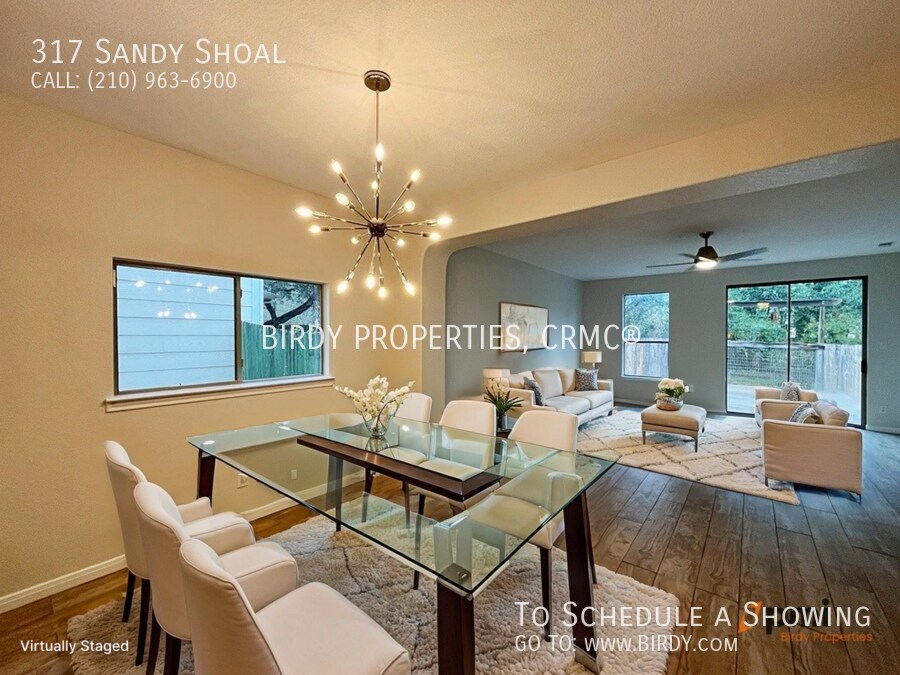 Welcome to a warm and inviting 3-bed, 2-bath home that blends comfort, convenience, and modern style. Step inside to find a bright open floor plan with both carpet and ceramic tile flooring, plus two spacious living areas perfect for relaxing or entertaining. A carbon monoxide detector and programmable-thermostat HVAC system offer added peace of mind. The kitchen is a true highlight, featuring solid countertops, a breakfast bar, eat-in dining space, pantry, gas stove, dishwasher and microwave, everything you need for easy everyday living. The laundry room provides handy washer/dryer hookups, and the primary bedroom offers a comfortable retreat complete with a walk-in closet and an ensuite bath that includes a double vanity, garden tub, and walk-in shower. Step outside to enjoy a fenced backyard with mature trees, a deck and a mix of chain-link and privacy fencing-a great setting for unwinding outdoors. A 2-car garage with door opener adds extra convenience, and you'll love the community amenities: pool, playground, picnic and barbecue areas, plus walking and jogging trails. All of this, just moments from shopping and daily essentials. "*PET APPS $30 with credit card/debit payment per profile or $25 by ACH per profile. All information in this marketing material is deemed reliable but is not guaranteed. Prospective tenants are advised to independently verify all information, including property features, availability, and lease terms, to their satisfaction. *some marketing photos may be virtually staged images*