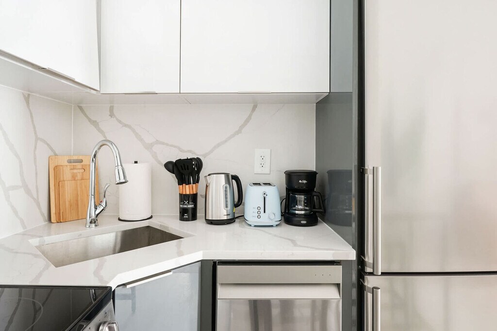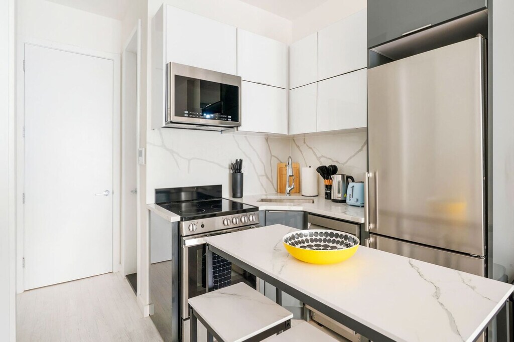 Step into your perfect 1-bedroom apartment located in the heart of the Village, just 2 blocks from Union Square on 14th St. and 1-2 Ave. With easy access to the 4, 5, 6, and Q subway lines, this is the place to be! Your apartment comes fully furnished with all the amenities needed to make your stay unforgettable, including a fully functional kitchen, a modern bathroom with a standing shower, in-unit washer and dryer, and living space with high-speed internet and a 50" TV. You can just bring a suitcase, kick back, and feel at home. The space has been designed with great attention to detail, ensuring it is not only beautiful but also functional and comfortable. Union Square is a lively and diverse neighborhood in the heart of Manhattan, New York City. Known for its historic park, cultural events, political rallies, and a popular farmers' market, the neighborhood offers a range of shopping, dining, and entertainment options. Iconic landmarks such as the Flatiron Building and the Metronome art installation are nearby. Nestled in the heart of Union Square, you can walk to Gramercy Park and Irving Place. The area boasts easy access to some of the city's best dining, shopping, and entertainment options. With multiple subway lines nearby, including the L, 4, 5, 6, N, Q, and R trains, commuting throughout Manhattan and beyond is seamless. Pets are allowed only with the owner's approval. Please reach out for inquiry.