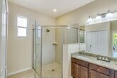 This exceptional 4-bedroom,2-bathroom pool home is not only a perfect retreat for families but also a sustainable living choice,powered by Tesla solar panels that significantly reduce your energy costs and environmental footprint. As you enter,you'll be captivated by the spacious,open-concept layout that invites natural light to flow through every room. The modern kitchen is a culinary dream,featuring stainless steel appliances,sleek countertops,and an island breakfast bar that seamlessly connects to the dining and living areasideal for both everyday living and entertaining. The master suite serves as a tranquil sanctuary,complete with an en-suite bathroom that features dual sinks,a luxurious shower. The additional three bedrooms are generously sized,providing ample space for family members,guests,or even a home office setup. Step outside to your private backyard paradise,where a sparkling pool awaits,surrounded by lush landscaping great for entertaining.