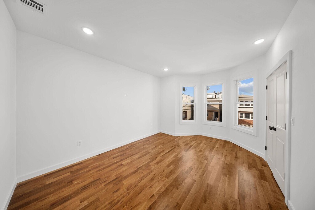 Spacious and beautifully designed 3-bedroom, 1-bath first-floor unit with a den located at 319 William St Unit 1 in Harrison. This brand new home offers a modern and versatile layout, highlighted by a large eat-in kitchen, rich hardwood floors throughout, and abundant natural light. The den provides the perfect work-from-home or flex space. Additional features include in-unit laundry, central air, and modern appliances. Ideally located approximately a 17-minute walk to the Harrison PATH Station, providing a seamless commute into New York City. Enjoy close proximity to West Hudson Park, Red Bull Arena, and the vibrant shops and restaurants along Frank E. Rodgers Boulevard.