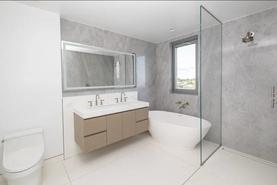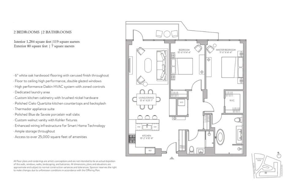 BIAOJUN XIEEnjoy elevated living at One Park in this 1,284-square-foot two-bedroom, two-bath residence featuring a private balcony and one assigned parking space. Designed with both comfort and style in mind, the home offers a bright, open layout highlighted by floor-to-ceiling windows that bring in abundant natural light. The modern kitchen is equipped with a premium Thermador appliance package, complemented by quartzite countertops and backsplash, along with a streamlined breakfast bar ideal for everyday meals or hosting guests. The primary bedroom serves as a peaceful escape, featuring a spa-style bathroom with a freestanding soaking tub and refined porcelain finishes. The generously sized second bedroom easily accommodates a king-size bed, making it well-suited for guests, a home office, or additional living flexibility. Residents of One Park have access to an impressive 25,000+ square feet of resort-style amenities, including 24-hour concierge service, valet parking, an indoor swimming pool, fully equipped fitness center, yoga studio, sauna, squash and basketball courts, a rooftop terrace with BBQ stations, private theater, resident lounge, guest suites, bicycle storage, and more.