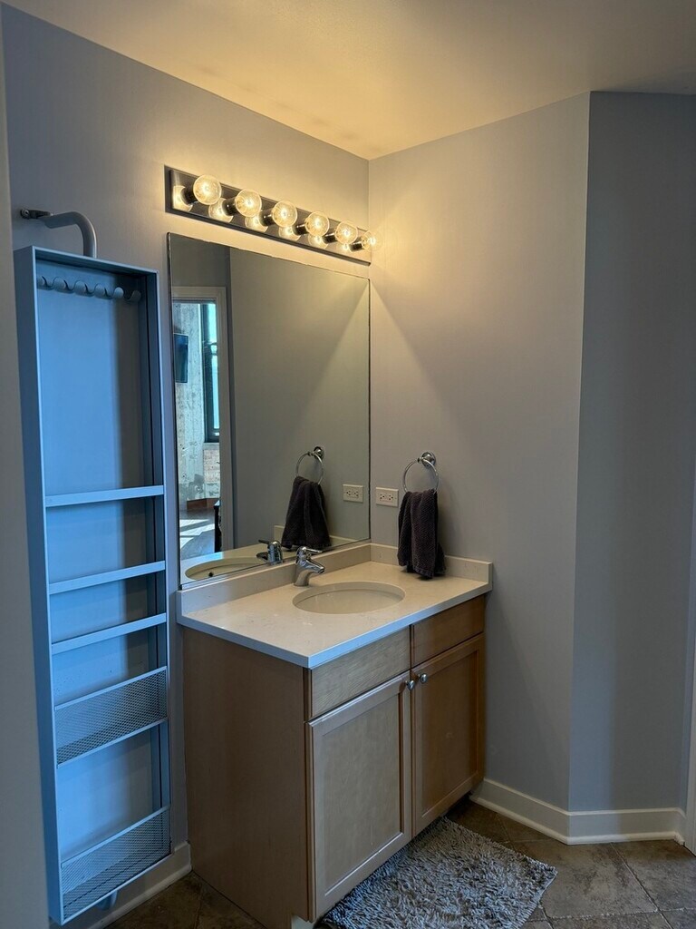 Come see this gorgeously updated 2 bed 2 bath loft in South Loop! Manufactured hardwood floors throughout the entire unit with 16 ft. ceilings giving the unit an open and airy feel with concrete accents, floors, and ceilings. The spacious primary bedroom can easily accommodate a king-sized bed along with a desk or dresser with a walkthrough closet leading to the ensuite bathroom with a separate bath and shower. The second bedroom has a partial lofted wall for additional natural light, perfect for a home office or guest room. The kitchen has all stainless steel appliances with dark finish cabinetry and white stone countertops. Other unit features include an in unit washer and dryer, central AC, private balcony with stunning skyline views, and one garage parking space included in the rental price. Building amenities include a rooftop sundeck and fitness center with secure code access to the building and is located next to a lovely park. Only a 10 minute walk to the nearest train station and less than 20 minute drive to Midway airport!