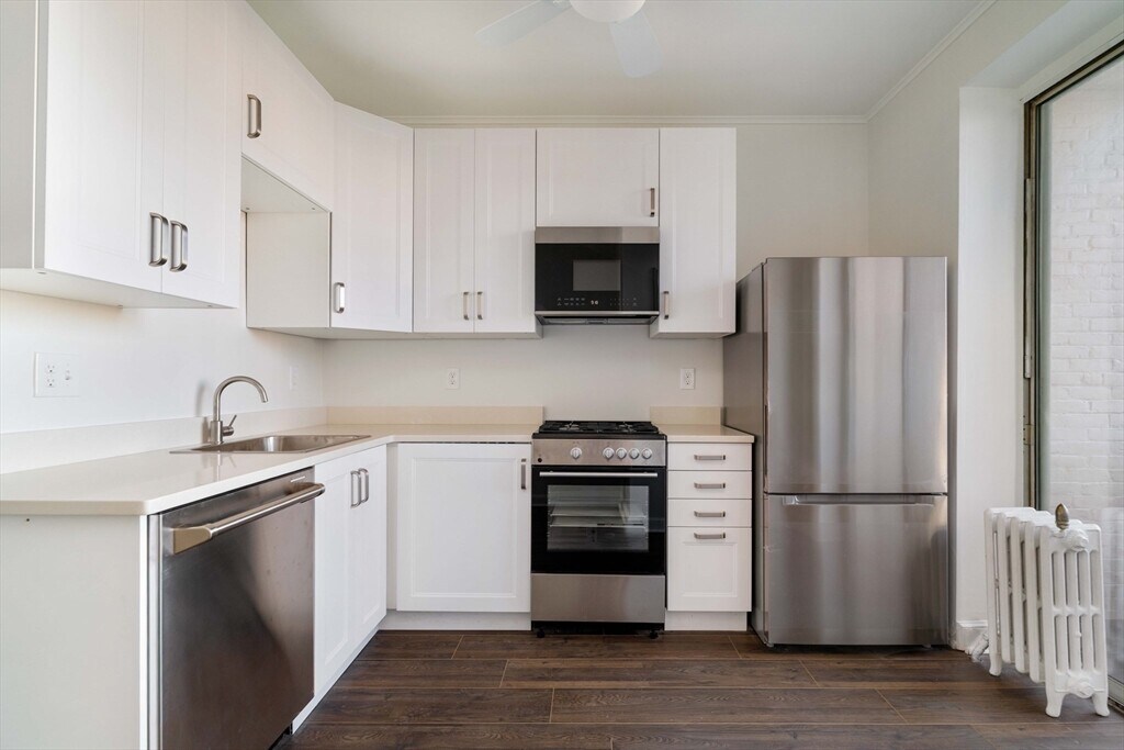 NO FEE! Presenting 321 Tappan Street, a recently renovated condo nestled in a stunning courtyard building in the heart of Washington Square. This gorgeous residence offers 1,243 square feet of well-designed living space, featuring three spacious bedrooms and two bathrooms. Recently renovated unit with high ceilings, gleaming hardwood floors, new windows, updated kitchen with all new appliances and two renovated bathrooms. Practicality meets convenience with assigned parking, ensuring you always have a spot waiting for you. In unit laundry has also recently been added to the unit. Located in the vibrant neighborhood of Washington Square, this condo provides easy access to a variety of dining, shopping, and recreational options. The Whole Foods grocery store and Star Market are nearby. Convenient commuter location to Longwood Medical via the D line of the trolley as well being convenient to the C line for those traveling to Boston.