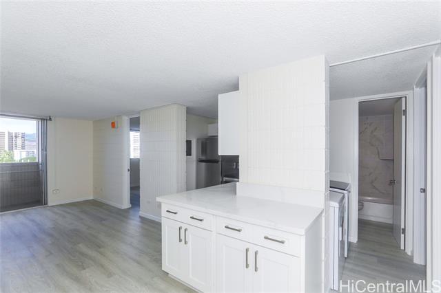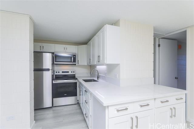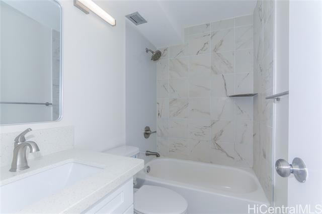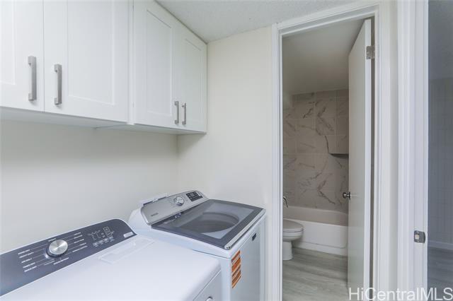 Sunset Lakeview - Fully renovated 3 bedroom, 2 bath on lower floor comes with tandem parking for 2 cars. Recent renovations include: luxury vinyl plank flooring throughout, kitchen cabinets with quartz counter tops, new bathroom vanities and sinks, new shower with Quartz surround panels and new toilet. Whirlpool appliances include; refrigerator, range/oven, microwave, with top loading washer and dryer and plumbing fixtures; tiled bathroom surrounds with new plumbing fixtures, vanities. Rent includes water, sewer and hot water. Amenities include: swimming pool, a playground area, two small fitness centers, a sauna, a dog park, and a BBQ grilling area. The building has 24-hour security. Living area 892 square feet. The building is conveniently situated in the Aliamanu-Salt Lake neighborhood, offering easy access to major highways, military bases, and downtown Honolulu, making commutes and travel convenient. Lease term - 6 months to start. No pets/no smoking (no exceptions). Application fee - $9.35 per adult.