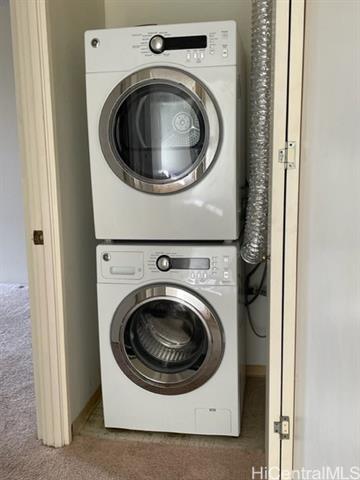 Pet-Friendly Kailua Living! Bring your furry companion (1 small dog under 30 lbs or up to 2 cats) to this 11th-floor 1-bed, 1-bath home at Windward Passage. Enjoy 713 sq ft of comfortable island living with sweeping Ko'olau mountain views. The unit was refreshed in 2021 with luxury vinyl plank flooring, rich brown cabinetry, and a clean mini subway-tile backsplash. A brand-new 2025 stainless French-door refrigerator pairs perfectly with the matching range and microwave. Rustic barn doors allow you to open or close off the bedroom as desired, while trade winds and a window A/C keep you cool year-round. Enjoy in-unit laundry, a covered parking stall, and dedicated storage for your kayak, surfboard, and bicycle. Windward Passage offers resort-style amenities including a pool, fitness center, tennis court, BBQ pavilions, meeting room, resident manager, and attended daytime security. Located in the heart of Kailua Town, you are moments from Whole Foods, Target, local cafés, breweries, and the Sunday farmers market, with world-famous Kailua and Lanikai Beaches just over a mile away. Easy access to H-3, Pali, Likelike, and MCBH makes commuting a breeze.