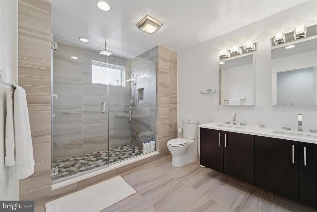 Welcome to 322 Fairmount Avenue, a spacious 3 bedroom, 3.5 bathroom home in the heart of Northern Liberties. Step inside to an impressive living area with soaring two story ceilings and dramatic windows that fill the space with natural light. The open layout flows into a modern kitchen with quartz countertops, custom cabinetry, stainless steel appliances, and a large dining area. Just off the kitchen you will find a private deck, perfect for everyday relaxation or entertaining. Upstairs, two well-sized bedrooms each offer generous closet space and their own full bathrooms. The entire next level is dedicated to the primary suite, featuring a large bedroom, walk-in closets, and a private bath with double vanity, glass-enclosed shower, and stylish finishes. On the top level, an oversized roof deck provides plenty of room for gatherings and offers sweeping skyline views. Additional features include garage parking, a convenient powder room on the first level, full-size washer and dryer, hardwood floors throughout, recessed lighting and excellent ceiling heights Set near Liberty Lands Park and some of the best restaurants and cafes in the neighborhood, this home combines comfort, convenience, and location in one of Philadelphia’s most vibrant communities. Come see it for yourself!