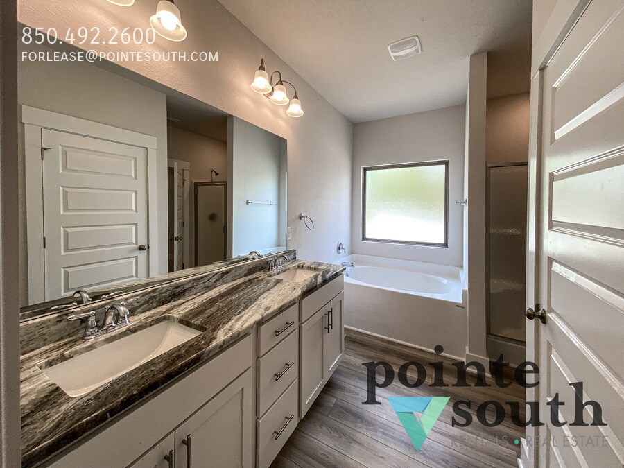 Gorgeous 4BD/2BA corner lot rental located in Gulf Shores! This home features an open floor plan with neutral tones. Beautiful luxury vinyl plank flooring throughout the spacious main entry,living and dining area. The kitchen features granite countertops,stainless steel appliances,white cabinetry,and an oversized island. The spacious master suite comes complete with double vanities,a stand-up shower,and large soaking tub. The three guest bedrooms,all a generous size,are located at the front of the home,along with the guest bathroom and full-size laundry-with washer & dryer hookups. This home also features a two-car garage. Outside you'll find a patio area and large unfenced backyard . This brand-new home is located in the Stonehaven Subdivision . The location is convenient to the white sand beaches,shopping,dining,and everything Gulf Shores has to offer. Tenant responsible for all utilities. Property will be held off market up to 14 days with Property Holding Fee upon approved application. Lease Prep Fee of $75 is due prior to move in. Approved pets require $400 pet fee per pet. Renters insurance is required.