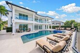 Epitome luxury waterfront house in the prestigious gated community of Eastern Shores. Boasting 5 spacious bedrooms, 4 lavish full bathrooms with soaring high ceilings. Architectural masterpiece offers a spanning 4,416 sq. ft. on 52 feet of prime water frontage. Panoramic canal views--unmatched privacy, no obstructing homes across water. Chef's kitchen, top-of-the-line appliances, a seamless open floor plan, two magnificent master suites. Second floor features a sleek glass balcony and modern floating glass staircase, a contemporary flair. Spacious terrace, saltwater heated pool, jacuzzi and private dock, direct ocean access. Additional features a stylish front balcony, a sleek black modern security gate, large bar and entertainment room designed for ultimate unwinding experience.