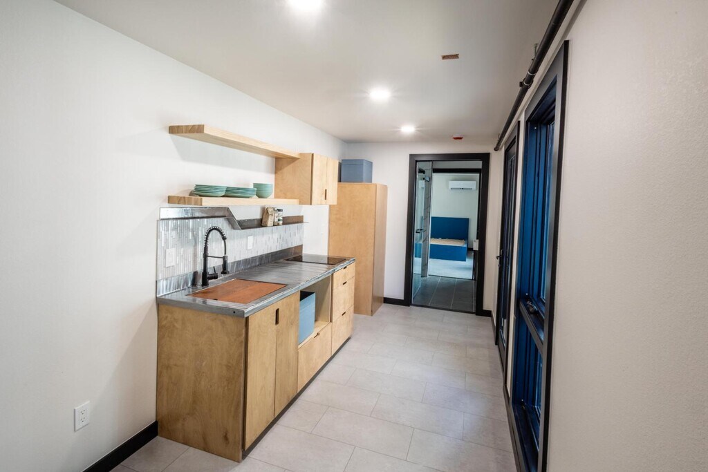 One bedroom, first-floor unit. This unit will be partially furnished with a brand-new bed. This is new construction. Market rent is $1650 plus a $150 fixed rate for utilities including WiFi. One dog is allowed with $500 deposit and $50/ month fee. Introductory three-month lease and then month-to-month at the same terms for up to 2 years. Unit deposit is half of monthly rent. Brand new construction out of shipping containers! Efficiently built private space, partially furnished units with flexible lease terms. All apartments have induction cook tops and dedicated mini-splits for heating and air conditioning. Amazing community spaces with comfortable seating, fire pits, a pizza oven and grills.