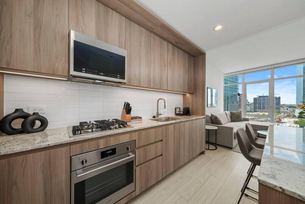 Feel at home in this modern studio, 1-bedroom, 2-bedroom, or 3-bedroom luxury furnished apartment in Chicago's vibrant West Loop. You’re close to great restaurants, shopping, and attractions like the Chicago River Walk, Willis Tower, Soho House Chicago and Fulton River Park. This apartment offers all the comforts of home, including a fully equipped gourmet kitchen, functional living areas, personal outdoor balcony, and convenient in-suite laundry. Enjoy the remarkable city views from the floor-to-ceiling windows while lounging on modern designed furniture. The apartment also features a flat-screen smart TV with cable, air conditioning, in-suite workspace, and a deep soaking tub or walk-in shower. Guests have access to a state-of-the-art fitness center, infrared saunas, modern co-work space, and a glamorous 31st floor “Cloud Lounge”. Pets are welcome with a one-time fee of $150 and a daily fee of $5 for each pet. Located in Chicago's Near West Side, the West Loop is a bustling area known for converted industrial buildings and a great restaurant scene. The West Loop's Fulton Market District, once the city's meat-packing and warehouse district, is now home to some of the city's most celebrated dining, a vibrant nightlife scene, one-of-a-kind boutiques, and notable public art. To protect our guests safety, full amenity access may be limited due to temporary closures. Rates vary during seasons. [SI]