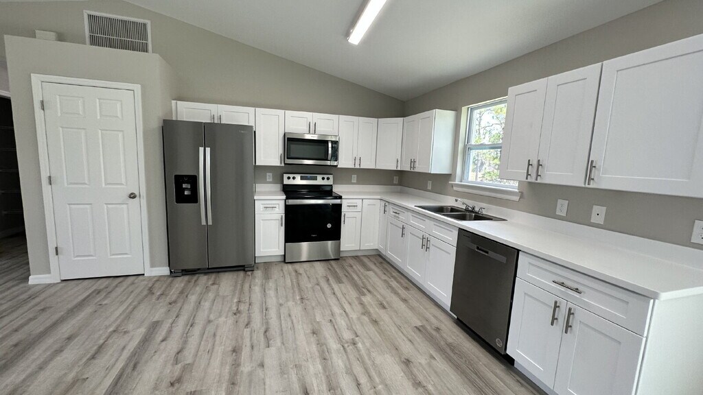 Welcome to 327 Lester Avenue S, in the desirable and rapidly growing area of Lehigh Acres! Built in 2023, this beautiful 4-bedroom, 2-bathroom home has an open and spacious floor plan with easy maintenance laminate flooring throughout the home. The kitchen is light and bright with stainless steel appliances and a generous pantry closet. The living and dining area features vaulted ceilings and sliders that lead to the backyard with large trees providing privacy. The primary bedroom features a walk-in closet and a private bathroom with dual sinks and a linen closet. Three other bedrooms and another full bath complete this lovely home. Other features include a large laundry room with washer/dryer hookups and extra storage space as well as a spacious 2-car garage. This home is conveniently located near shopping, dining and beautiful Gulf Coast beaches! All residents are enrolled in the Resident Benefits Bundle (RBB) for $47.00/mo. (not included in rental rate), which includes HVAC air filter delivery (for applicable properties), credit building to help boost your credit score with timely rent payments, liability insurance, identify theft protection, move-in concierge service making utility connection and home service set up a breeze during your move-in, pest control including bed bugs, fleas, ticks, mites, weevils, and cockroaches. More details upon application. PET SCREENING: If you have pets you will be required to submit a separate pet application for each pet, may charge additional fees. Copy and paste the following link into your browser to start your Pet Screening: A nonrefundable pet fee of $350 for each pet will be required if approved along with a monthly pet monitoring fee based upon the PAWS score from By submitting your information, you consent to being contacted by the Property Manager and RentEngine via SMS, phone, or email. By submitting your information on this page you consent to being contacted by the Property Manager and RentEngine via SMS, phone, or email.