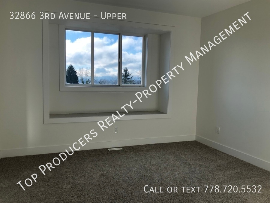 Upper Suite - 3 Levels - 32866 3rd Ave Mission Bedrooms: 4 Bathrooms: 2.5 Pets: With Approval No Smoking Utilities: Shared Available: Now Security Deposit: Half Month Rent Pet Deposit: Half Month Rent Brand new, spacious 4-bedroom plus den, 2.5-bath, 3-level upper suite featuring a bright and open layout with an additional recreation room perfect for family living, a home office, or entertainment space. This modern home offers generous living areas, contemporary finishes, and plenty of natural light throughout. Ideally located within walking distance to the West Coast Express, along with nearby shops and restaurants, providing both comfort and exceptional convenience for daily living.