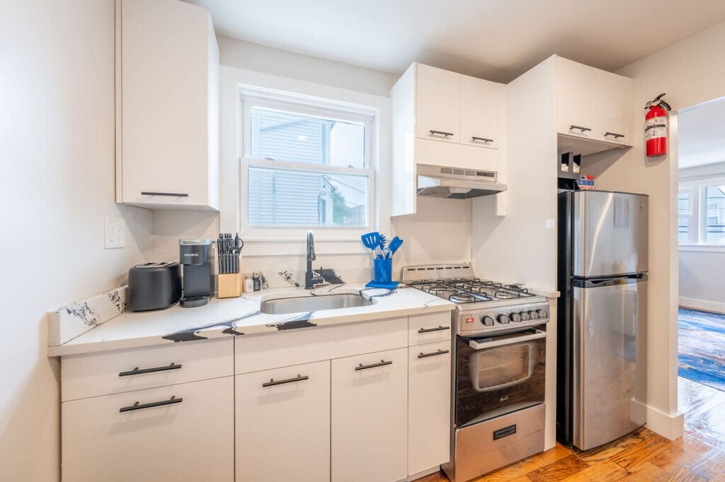 Feel at home in this modern first-floor 1-bedroom apartment in the heart of Newark, just an 8-minute walk to Penn Station for direct access to New York City, PATH, New Jersey Transit, and Amtrak. This apartment is ideal for traveling nurses, students, corporate guests, and long-term stays seeking convenience to New Jersey and New York City transit, dining, and attractions. This exceptionally well-located apartment is designed for traveling professionals, doctors, nurses, students, couples, and long-term guests. The layout includes 1 bedroom for 2 guests. A comfortable living area offers space to relax after work or study, while the fully equipped kitchen includes full-size appliances, cooking accessories, and essentials for daily meals. A Smart TV with streaming capabilities provides easy entertainment in the evenings. The building's coin-operated laundry offers convenience for extended stays. The apartment is set in a centrally located Newark location close to hospitals, universities, and major employers, making it ideal for medical staff, graduate students, and business travelers. With Newark Penn Station only an 8-minute walk away, guests have direct access to New York City, Jersey City, Hoboken, all airports, and regional attractions. Shops, restaurants, and daily conveniences are within minutes. Check-in is after 4 pm and check-out is before 10 am. Unauthorized early check-in or late check-out is a $300 penalty. You are staying in a residential area, and we kindly ask that you respect the community and your neighbors. Quiet hours are in place from 9 pm to 9 am, and parties or events are strictly prohibited. No pets are allowed, and no smoking is allowed in the apartment; there is a $500 penalty for violation. Includes fast Wi-Fi with a dedicated workspace for remote work. [SI]