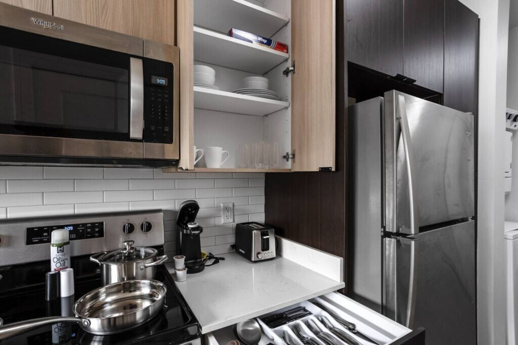 The advertised rate of $3,259/month is the lowest available price, based on a 30 day(s) stay with a move-in date of May 29, 2026. Rates vary depending on the duration of stay, season, and other parameters. For exact pricing and additional pricing components, please visit our website and enter your desired move-in and move-out dates. The rate is applicable when billed upfront; it can be higher if billed in multiple payments. Stay in the heart of downtown Indianapolis in this modern high-rise condo featuring floor-to-ceiling windows. Feel at home in this stylish designer condo that brings together modern elegance, everyday comfort, and an unbeatable location. This studio-style layout features a privacy curtain, designed to feel like a 1-bedroom for extra comfort and privacy. The fully equipped modern kitchen is perfect for preparing meals during your stay. Enjoy high-speed Wi-Fi, a smart TV to stream your favorite apps and shows in high definition, and the convenience of an in-unit washer and dryer. The building offers a rooftop pool and grill area, a state-of-the-art gym, an executive lounge with a pool table, a free espresso machine, a community workspace, and a convenient contactless snack bar. Pets are welcome with a fee of $25 per day for stays of 1-7 nights, a flat fee of $200 per pet for stays of 8-28 nights, or a flat fee of $300 per pet for stays of 30+ nights. Early check-in at 2PM or 12PM is available for an additional fee of $25 or $50, respectively, subject to approval. Late check-out at 12PM is available for an additional fee of $25, subject to approval. Situated in the lively center of Indianapolis, this condo puts you within walking distance or a quick drive to many of the city’s most popular attractions, with amazing restaurants, cafés, and shops all around. It's just steps from University Park and minutes from highlights like Mass Ave and White River State Park. With convenient access to sports arenas, museums, and nightlife, this vibrant, walkable neighborhood brings the best of Indy right to you. Nearby attractions include Lucas Oil Stadium, Gainbridge Fieldhouse, Victory Field, and the Indianapolis Motor Speedway. Smoking will result in a $500 fine. Absolutely no parties are allowed; violations will result in a $1,000 fine and immediate eviction with no refund. Noise curfew is from 10 PM–7 AM on weekdays and 10 PM–8 AM on weekends; penalties for violation include a complimentary warning for the first offense, a $100 fine for the second, and immediate eviction with no refund for the third. Pet weight limit is 35 lbs, and no pitbulls are allowed. All pets must be housetrained and must not be left alone in the apartment by themselves. An unregistered pet fee is $100 per pet or variation to achieve up to $200. [GO]