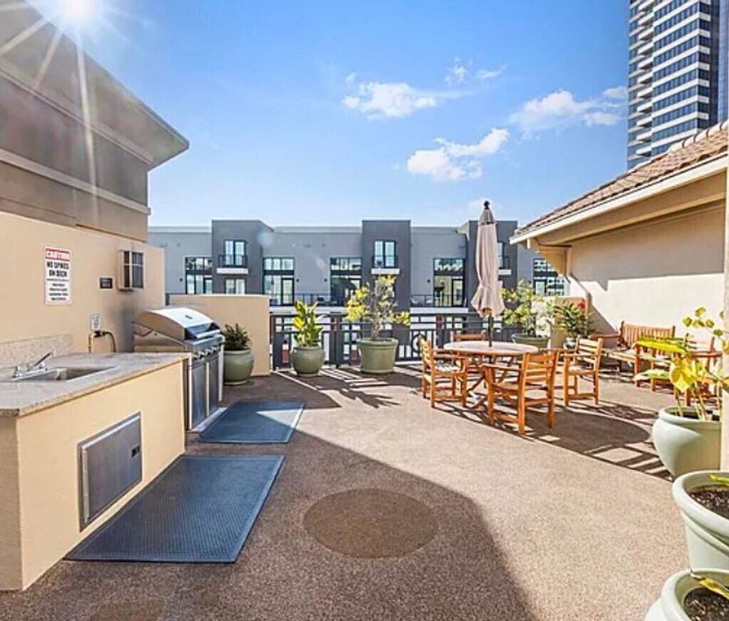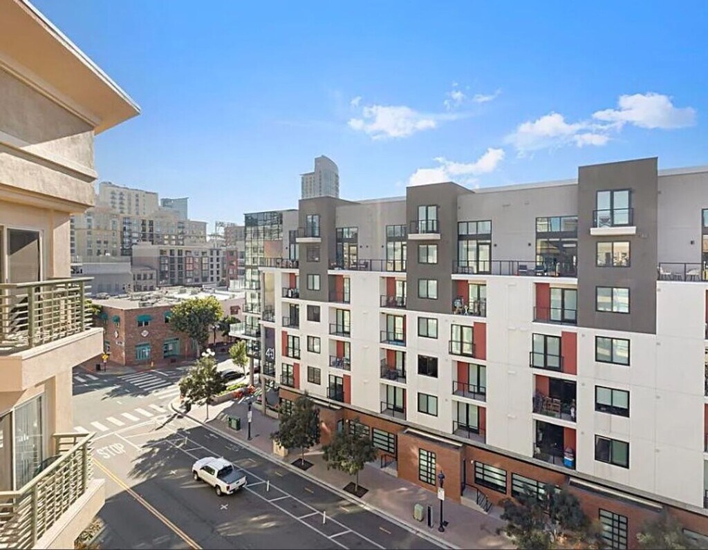 Discover elevated city living in this stunning 2-bedroom, 2-bath, 976 sq. ft. condo nestled in the vibrant heart of downtown San Diego. Perched on the second floor, this stylish home showcases breathtaking views from every room and a spacious private patio—perfect for unwinding or entertaining guests. Inside, you’ll be greeted by high ceilings, sleek luxury vinyl flooring, and plenty of natural light that fills the open living spaces. The primary suite boasts large windows framing city views and a walk-in closet, while the second bedroom offers ample comfort and its own scenic outlook. A modern, fully equipped kitchen and in-unit washer and dryer bring everyday ease to your lifestyle. Additional highlights include one assigned parking space in a secure garage and access to the community’s inviting lounge areas and outdoor decks featuring BBQ grills—ideal for enjoying San Diego’s beautiful weather. Experience the best of downtown living in this gorgeous condo where luxury, comfort, and city views come together effortlessly.