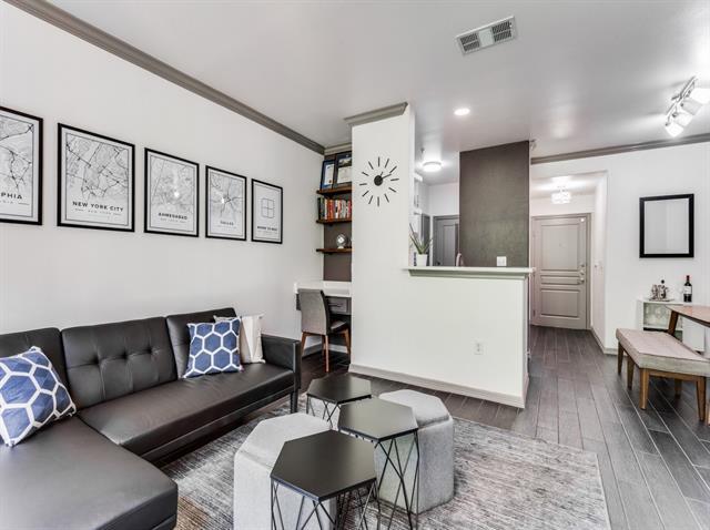 Upgrade your lifestyle at Grand Treviso Luxury Condominiums with this well-appointed 1,001 square feet one-bedroom residence featuring a dedicated study and a private outdoor patio—an uncommon find in a luxury condominium setting. This thoughtfully designed residence showcases an open-concept layout with granite countertops in both the kitchen and bath, contemporary finishes, and a generous walk-in closet. The flexible study provides ideal space for a home office, guest area, or quiet retreat. Positioned on the first floor for ease of access, the unit also includes assigned garage parking located just steps from the residence. Recently refreshed with neutral tone interior paint. The thoughtfully designed layout provides flexibility for today’s lifestyle, whether working from home, hosting guests, or enjoying quiet downtime. Unit 158 is especially convenient, offering first-floor assigned garage parking located just steps from the residence—an exceptional advantage within the building. Residents enjoy a true resort-style lifestyle with full-service amenities including 24-hour concierge, a rooftop pool with cabanas and grilling stations, sky terrace, state-of-the-art fitness center, coffee lounge, business center, and curated resident events. Secure, controlled-access parking and key-card entry provide added peace of mind. Enjoy walkable access to Lake Carolyn and the Mandalay Canal, or entertain with a short stroll to Water Street dining, gondola rides, and the Toyota Music Factory. The location offers exceptional connectivity, situated within approximately 15 minutes of DFW and Love Field Airports, and near the Hospital District, Las Colinas Country Club, and the Four Seasons Resort and Club Dallas at Las Colinas. This residence combines low-maintenance luxury, walkable urban amenities, and one of Las Colinas’ most desirable high-rise communities.