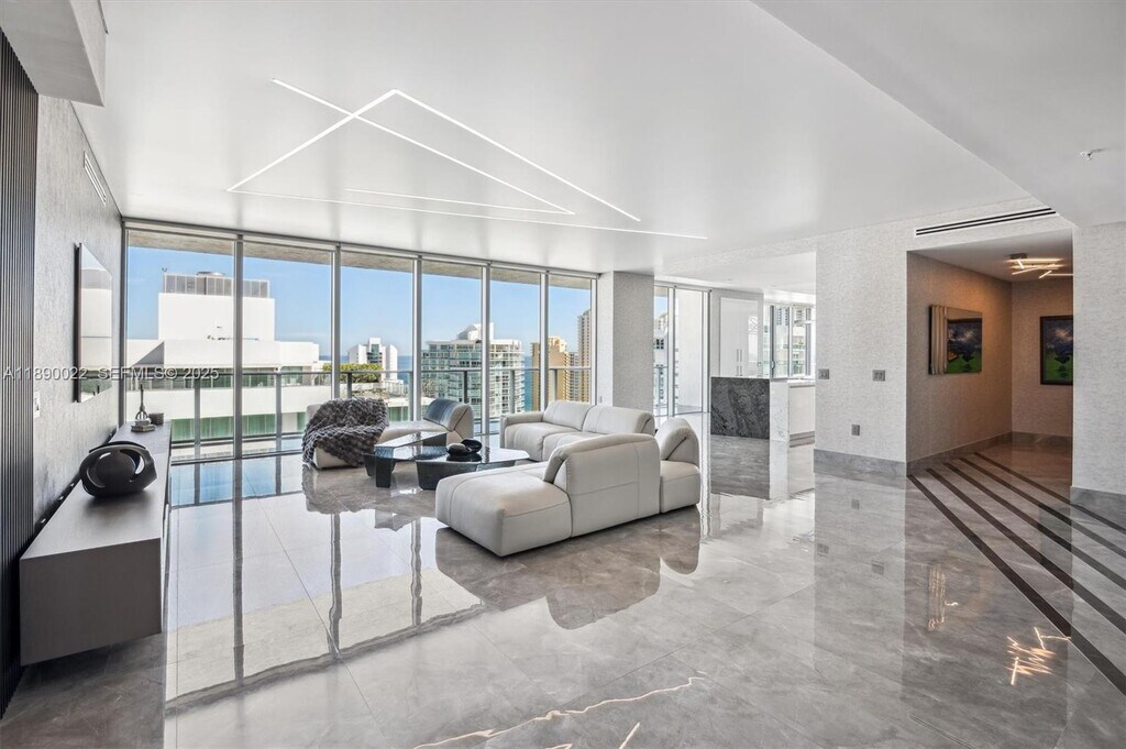 This stunning, state of the art Upper Penthouse is the epitome of turnkey luxury, w/4BR+Den & 5BA, spanning nearly 5,000sf of living space (3,877sf interior+1,011sf wrap around balcony) just steps from the beach. Professionally designed by Intero Futuro and fully furnished to provide an unparalleled living experience. Open layout with stretch ceilings and ultra-modern, linear LED lighting. Floor to ceiling windows with breathtaking views of the ocean, intracoastal and city skyline. Customized closets and a curated collection of luxury Italian furniture. Top-tier chef’s kitchen, Wolf/Sub-Zero/Bosch appliances with marble+adamantium quartzite countertops. Spacious primary suite with stunning ocean views, designer walk-in closet and a spa-like bathroom that creates a serene and lavish escape. MLS # A11890022