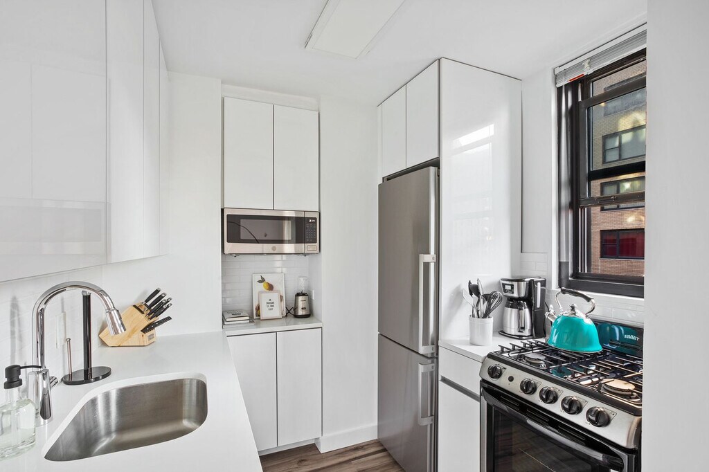 Retreat to this modern 1-bedroom apartment located around the corner from Central Park. Featuring a fully stocked kitchen and a sunny living space, you'll feel at home during your stay. Enjoy free access to the building's state-of-the-art fitness center with Peloton bikes and a beautiful outdoor garden and lounge. On-site parking is available in the building for an extra fee. This apartment offers a stocked kitchen with cooking essentials including a toaster, kettle, coffee machine, blender, and coffee and tea. Relax in the living space with a smart TV, high-speed Wi-Fi, and a king-sized bed. Additional amenities include a sleeper sofa, humidifier, handheld steamer, bedside wireless charging station, and a stocked bathroom with towels, toiletries, and paper products. Sustainable cleaning and personal care products are also provided. On-site parking is available in the building's garage for an additional fee. Pets are allowed on a case-by-case basis, with a one-time non-refundable pet fee of $500 if approved. The fee does not apply to registered service animals. Nestled between Times Square, Lincoln Square, and the ultra-luxe Billionaires Row, this apartment is located in one of NYC's busiest transit hubs - Columbus Circle. Convenience is key with a mix of national retailers like Whole Foods and Nordstrom, trendy shops and eateries such as Per Se, Marea, Bad Roman, Masa, and Momofuku, and instant access to Central Park. Columbus Circle offers chic rooftop bars like Above 6 with cool views and the Turnstyle Underground Market with a selection of 39 unique eateries, shops, and pop-up stalls. Art enthusiasts can enjoy The Museum of Art and Design and The American Folk Art Museum, while the Lincoln Center for the Performing Arts offers music, dance, film, and more. The apartment may be rented for a minimum of 30 days. Pets are allowed on a case-by-case basis, with a one-time non-refundable pet fee of $500 if approved. The fee does not apply to registered service animals. An additional cleaning fee of $150 applies if the apartment is left in poor condition. We kindly ask that you leave the apartment in the same condition as upon move-in.