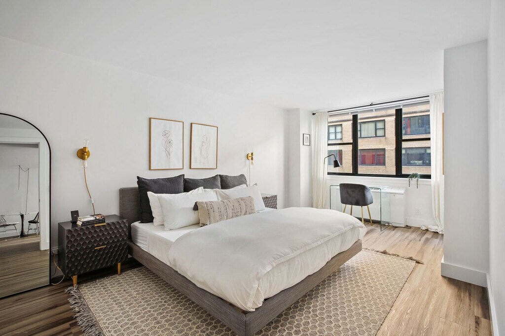Retreat to this modern 1-bedroom apartment located around the corner from Central Park. Featuring a fully stocked kitchen and a sunny living space, you'll feel at home here. During your stay, you'll have free access to the building's state-of-the-art fitness center with Peloton bikes and a beautiful outdoor garden and lounge. On-site parking is also available in the building for an extra fee. This apartment comes with a fully stocked kitchen, including cooking essentials such as a toaster, kettle, coffee machine, blender, and coffee and tea. Enjoy the convenience of a smart TV, high-speed Wi-Fi, a king-size bed, a humidifier, a handheld steamer, and a bedside wireless charging station. The bathroom is stocked with towels, toiletries, and paper products, along with sustainable cleaning and personal care products. On-site parking is available in the building's garage for an additional fee. Pets are allowed on a case-by-case basis, with a one-time non-refundable pet fee of $500 if approved. This fee does not apply to registered service animals. Nestled between Times Square, Lincoln Square, and the ultra-luxe Billionaires Row is one of NYC's busiest transit hubs - Columbus Circle. Convenience is king here with a mix of national retailers like Whole Foods and Nordstrom, trendy shops and eateries such as Per Se, Marea, Bad Roman, Masa, and Momofuku, and instant access to the city’s most iconic greenspace, Central Park. Columbus Circle is a great destination for tourists and locals alike, offering chic rooftop bars like Above 6 with cool views of the bustling city. The Turnstyle Underground Market offers a selection of 39 unique eateries, shops, and pop-up stalls right outside the entrance to A/C/B/D/1 subway lines. Art enthusiasts can enjoy The Museum of Art and Design and The American Folk Art Museum, while the Lincoln Center for the Performing Arts offers music, dance, film, and more every day of the year. A $1,000 security deposit is required for all bookings made through our direct booking website or through VRBO. The security deposit will be returned, less any damages, within 14 days of vacating the apartment. The apartment may be rented for a minimum of 30 days. An additional cleaning fee of $150 applies if the apartment is left in poor condition. We kindly ask that you leave the apartment in the same condition that it was in upon move-in.