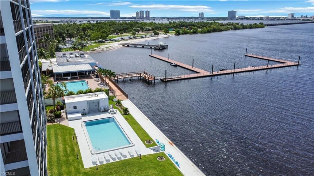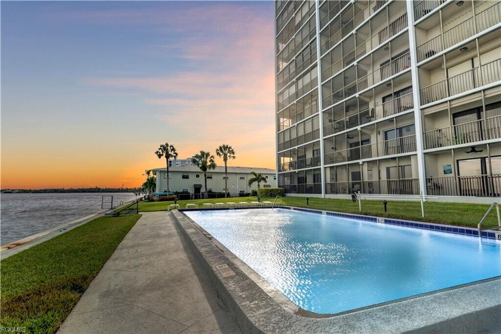 Stunning 8th floor Riverfront Condo Introducing a truly remarkable opportunity to live in a stunning 8th floor Riverfront Condo in North Fort Myers,FL. This corner unit has breathtaking views of the river from every room,providing a serene and picturesque backdrop to your daily life. The spacious layout includes 2 bedrooms and 2 bathrooms,along with a convenient murphy bed for guests. Enjoy the convenience of a covered carport and a secured lobby for added peace of mind. Take advantage of the community pool for relaxation and recreation right at your fingertips. Don't miss out on the chance to experience luxury riverfront living at its finest in this exquisite condo. NOTE ASSOCIATION REQUIRES APPLICANT HAVE A MINIMUM 650 CREDIT SCORE