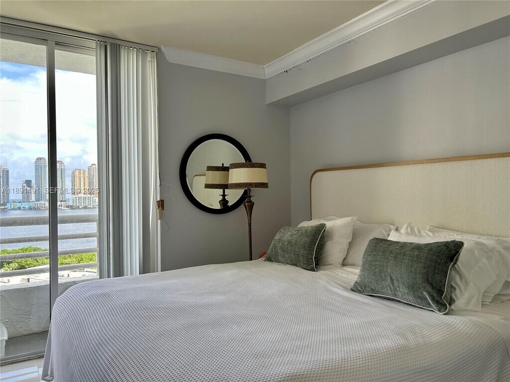 Corner unit with amazing views. Newly renovated with all new appliances and 3 TV's. Fully furnished, sheets, towels, dishes, etc. Rent includes electricity, cable, WiFi Internet. Two heated pools, jacuzzi, gym, 24-hour front desk/security. Walking distance to Founder's Park/playground, Aventura Mall, & close to beach. Includes parking garage space for 1 car and additional space may be rented. NO PETS & NO SMOKING. $3,200 based on a 6-month lease. Shorter term may increase rent rate. Move-in deposit includes 1st month & 2-mth security, $150 applic. fee & $150 maintenance fee. Tenant responsible for HOA $1,000 security deposit. Available May 2 to Oct. 30, 2026.