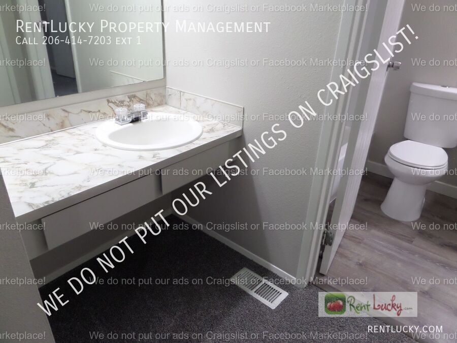 Make this super-nice duplex your new home! This lovingly-maintained 3-bedroom unit features new carpet, fresh paint, new hard surface flooring in the entry and kitchen and dining room. One of the bedrooms features a private sink for added convenience. Other features include new furnace, wood-burning fireplace, large fenced back yard (brand new fence!) and attached one-car garage. All appliances provided, including brand new washer and dryer. Tenant to pay all utilities, including a flat fee of $75 per month for water and sewer. Great Federal Way location with easy access to Hwy 99, I-5, shopping, restaurants, Celebration Park and new Link Light Rail station (coming to Federal Way in December). Make an appointment to view this great home today! BEWARE OF SCAMMERS! If you see a Craigslist OR Facebook Marketplace ad for this house at a lower price or an ad that does NOT mention RentLucky Property Management, SCAMMERS have posted the other ad. RentLucky does NOT put our listings on Craigslist NOR Facebook Marketplace. If you have been dealing with a SCAMMER, please reach out to RentLucky immediately at . TIPS & TRICKS to a Successful Leasing Experience with RentLucky! ARRANGE A TOUR: Visit our website at