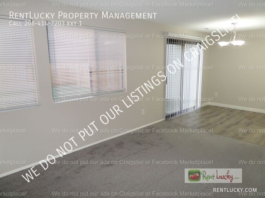 Make this super-nice duplex your new home! This lovingly-maintained 3-bedroom unit features new carpet, fresh paint, new hard surface flooring in the entry and kitchen and dining room. One of the bedrooms features a private sink for added convenience. Other features include new furnace, wood-burning fireplace, large fenced back yard (brand new fence!) and attached one-car garage. All appliances provided, including brand new washer and dryer. Tenant to pay all utilities, including a flat fee of $75 per month for water and sewer. Great Federal Way location with easy access to Hwy 99, I-5, shopping, restaurants, Celebration Park and new Link Light Rail station (coming to Federal Way in December). Make an appointment to view this great home today! BEWARE OF SCAMMERS! If you see a Craigslist OR Facebook Marketplace ad for this house at a lower price or an ad that does NOT mention RentLucky Property Management, SCAMMERS have posted the other ad. RentLucky does NOT put our listings on Craigslist NOR Facebook Marketplace. If you have been dealing with a SCAMMER, please reach out to RentLucky immediately at . TIPS & TRICKS to a Successful Leasing Experience with RentLucky! ARRANGE A TOUR: Visit our website at to schedule a self-guided tour allowing you access, at your convenience. If this is not a self-tour property, you may reply to this ad, which emails our Touring Representative. RESPONSE TIME: We will answer all leads in the order received, and we do our best to respond within one business day. We respond to ALL inquiries, please be patient. We have a 'no-bullying' policy, and zero tolerance for verbal abuse towards our staff. HOW TO APPLY: Once you have toured the property and are ready to apply, visit to apply online. $55 per adult over the age of 18. Each person must fill out a separate application; there are no joint applications for married persons or co-signers. SCREENING CRITERIA: Please visit our website at for our detailed screening criteria. We DO NOT answer screening criteria qualification questions over the phone. ABOUT PETS: Most landlords will consider pets with additional deposit. Pet fee is $45 per month. MOVE IN COSTS: A retainer deposit equal to one month's rent is required to take property off the market. This will be applied to your first full month's rent. Second month will be pro-rated less the move in days. Security and pet deposits are required at move in. Security deposit is equal to one month's rent. $350 onboarding fee (per group, not per individual, if there are multiple applicants in a group).