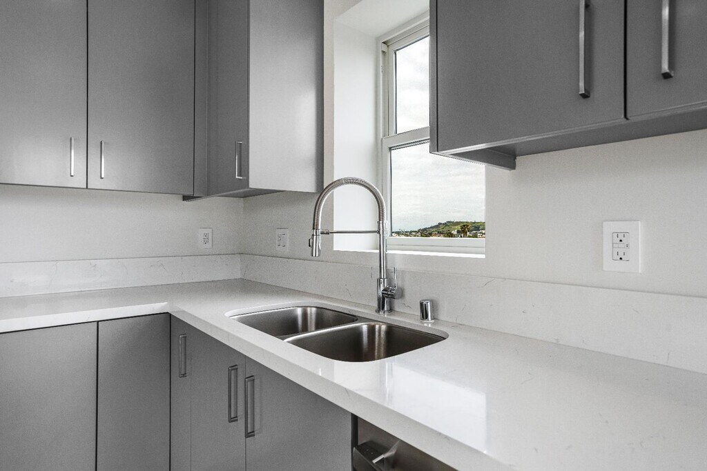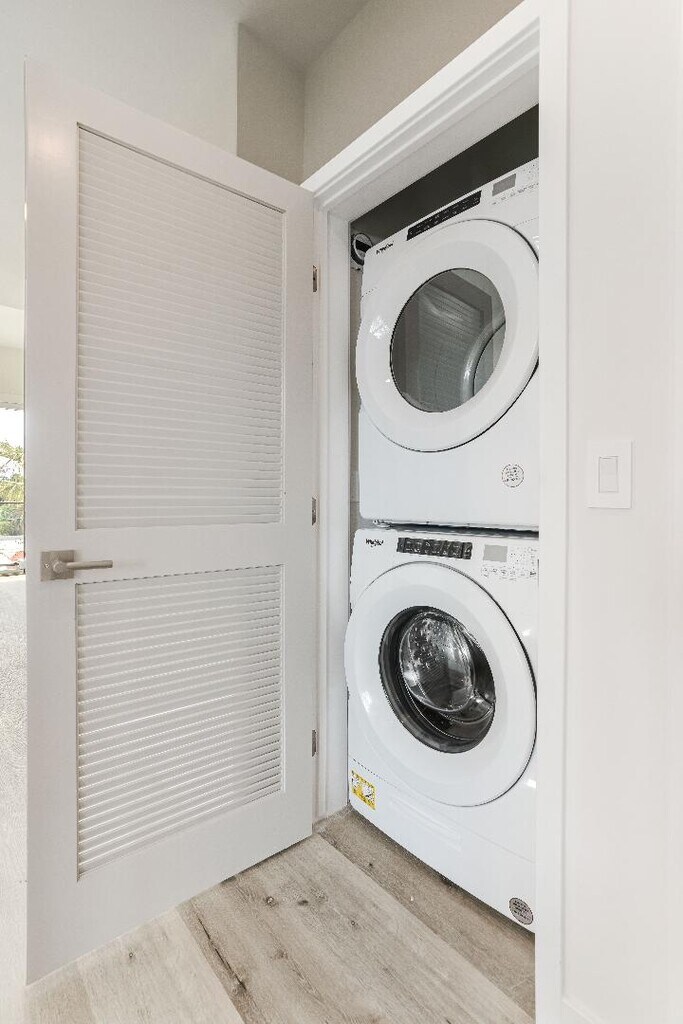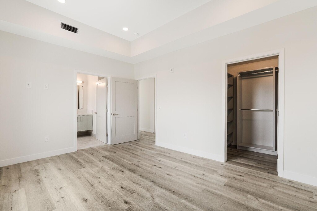 Unit 102 is a beautifully laid out 585 sq ft 1 bed, 1 bath bright, quiet, ground floor luxury residence. Open plan design extends the living room to a large private patio. Spacious bedroom is filled with natural light and features a walk-in closet and large bathroom. Washer and dryer are installed in a separate closet. There is additional built-in linen/storage closet. 1 parking space is included. The Jade of Palms is a new boutique complex of 15 thoughtfully designed apartments featuring premium flooring, high ceilings, huge windows for ample natural light, kitchens with quartz countertops, premium stainless steel appliances, walk-in closets, bathrooms with premium fittings and tapware, in-unit washers and dryers, central AC, storage closets, parking in secure gated garage with EV chargers and bike storage, controlled entry, common use rec room, and shared rooftop deck with BBQ.