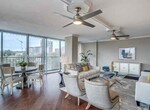 Discover the pinnacle of high-rise living with this reimagined corner penthouse in Park Towers, showcasing a complete renovation of timeless elegance and modern sophistication. Every detail of this expansive residence has been thoughtfully designed to blend luxury, comfort, and effortless style. The heart of the home is an impressive kitchen, where custom cabinetry, soapstone counters, and premium appliances create a refined culinary experience. Open to multiple living and dining areas, the layout invites seamless entertaining while maintaining intimate spaces for daily living. Walls of glass frame breathtaking panoramic views, while a sleek fireplace anchors the main living area with warmth and ambiance. The primary suite is a true retreat, featuring a spa-inspired bath, extraordinary closet space, and a private balcony for moments of quiet reflection. The guest suite offers generous proportions and an integrated office-study, while a versatile third bedroom doubles as an additional living area with pocket doors and a custom Murphy bed—perfect for flexibility and hosting. Expansive outdoor balconies provide the ultimate extension of the living space, with abundant room for dining, entertaining, or cultivating a private garden against the backdrop of the city skyline. Recent upgrades include new windows, sliding doors, plumbing, electrical, HVAC systems, and striking white oak hardwoods throughout. Intelligent storage solutions, such as a butler’s pantry, dedicated entertaining closet, and spacious utility room, enhance the functionality of the home without compromising style. Park Towers itself offers residents an unparalleled lifestyle with first-class service and security, community lounges, fitness center, pool, and direct access to the Katy Trail. With all utilities included in the HOA, this penthouse represents a rare opportunity to own a residence where design, convenience, and luxury converge in perfect harmony. Designed by Mitchell Garman Architects.