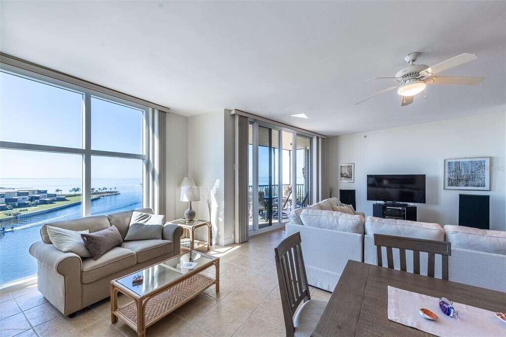 SEASONAL RENTAL-Exquisite End-Unit Penthouse at Grand Isle Towers – Panoramic Waterfront Luxury Perched gracefully on the southernmost corner of the top floor,this turnkey furnished penthouse residence at Grand Isle Towers offers an unparalleled vantage point overlooking the marina channel entrance,Charlotte Harbor,and the South Marina Basin. With nearly 2,500 sq ft under air,every detail of this home has been curated to embody elegance,comfort,and timeless coastal sophistication. The interior is bathed in natural light through walls of glass and soaring volume ceilings,framing panoramic water views that captivate from nearly every room. The heart of the home is the strikingly modern kitchen,where a sprawling quartz surface crowns custom Amish cabinetry,accented by gold-tone hardware for a refined finish. Designed for both beauty and function,the kitchen also features a large breakfast bar,expansive granite counters,abundant storage,and Whirlpool stainless steel appliances,making it a dream space for both casual dining and entertaining. The residence is impeccably furnished with high-end coastal décor,ensuring a seamless and luxurious living experience from the moment you arrive. Beyond your private retreat,Grand Isle Towers offers resort-style amenities that rival any luxury destination: a private fitness center,intimate theater room,elegant grand salon,and an expansive waterfront deck with an Olympic-size geo-thermal heated pool,spa,and grilling area. Life at Burnt Store Marina enhances this lifestyle even further,with two on-site restaurants,a 27-hole championship golf course,active pickleball and tennis groups,a modern fitness center,and the largest deepwater marina in Southwest Florida—a true haven for boaters. This penthouse is more than a home; it is a statement of refined living where waterfront beauty,luxury amenities,and the vibrant Burnt Store Marina lifestyle converge in perfect harmony. MLS# C7515746