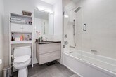 Welcome to The Cornerstone Lofts, an exclusive boutique condominium in the heart of Downtown Jersey City. This stunning 1-bedroom, 1-bath residence features soaring 10-foot ceilings, rich hardwood floors, and a chef’s kitchen outfitted with premium stainless steel Jenn-Air appliances. Custom lacquer cabinetry, quartz countertops, a built-in wine refrigerator, and a fully vented hood elevate both style and functionality. The spacious bedroom offers a serene retreat, complete with ample storage space to keep your home beautifully organized. Floor-to-ceiling Sierra Pacific windows fill the residence with natural light while providing energy efficiency and sound reduction. Thoughtful details include custom shades throughout, a closet credit, and a highly efficient heating and cooling system.Residents enjoy access to a private gym on the 7th floor and a beautifully landscaped green roof deck with skyline views. With acclaimed restaurants, parks, shopping, and 24-hour NYC transportation just steps away, The Cornerstone Lofts offers the perfect blend of luxury, convenience, and modern design.